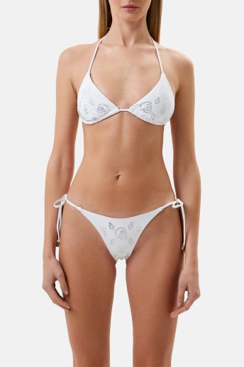 Taş İşlemeli Desenli Logolu İpli Bağlamalı Bayan Bikini CDPPT0901 BEYAZ
