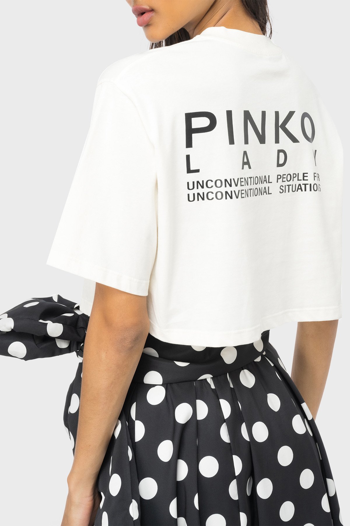 % 100 Pamuk Logo Baskılı Hafif Oversize Top Bayan T Shirt 101768 A13K Z03 BEYAZ