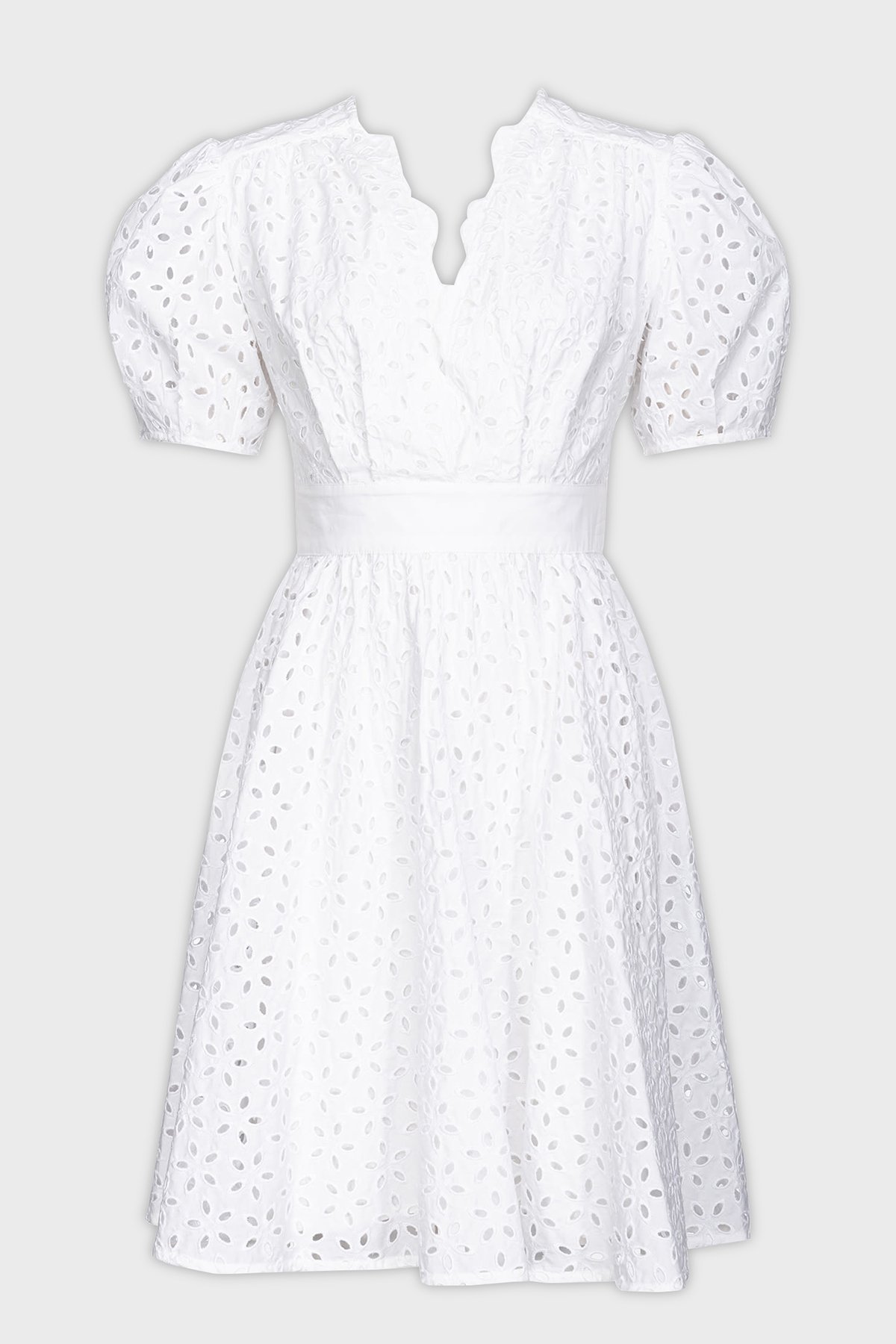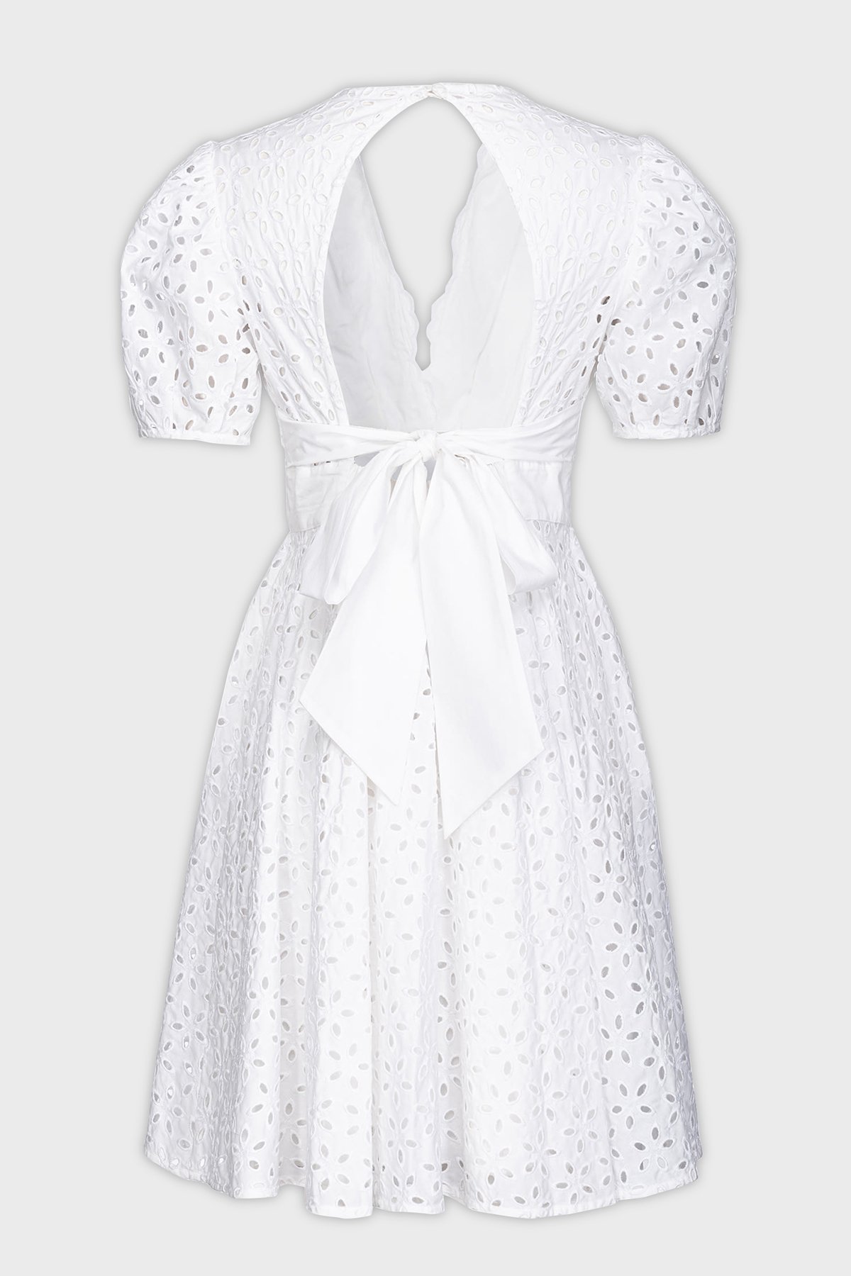 % 100 Pamuk Sırt Dekolteli Fistolu Balon Kol Mini Bayan Elbise 100890 A0Q4 Z04 BEYAZ
