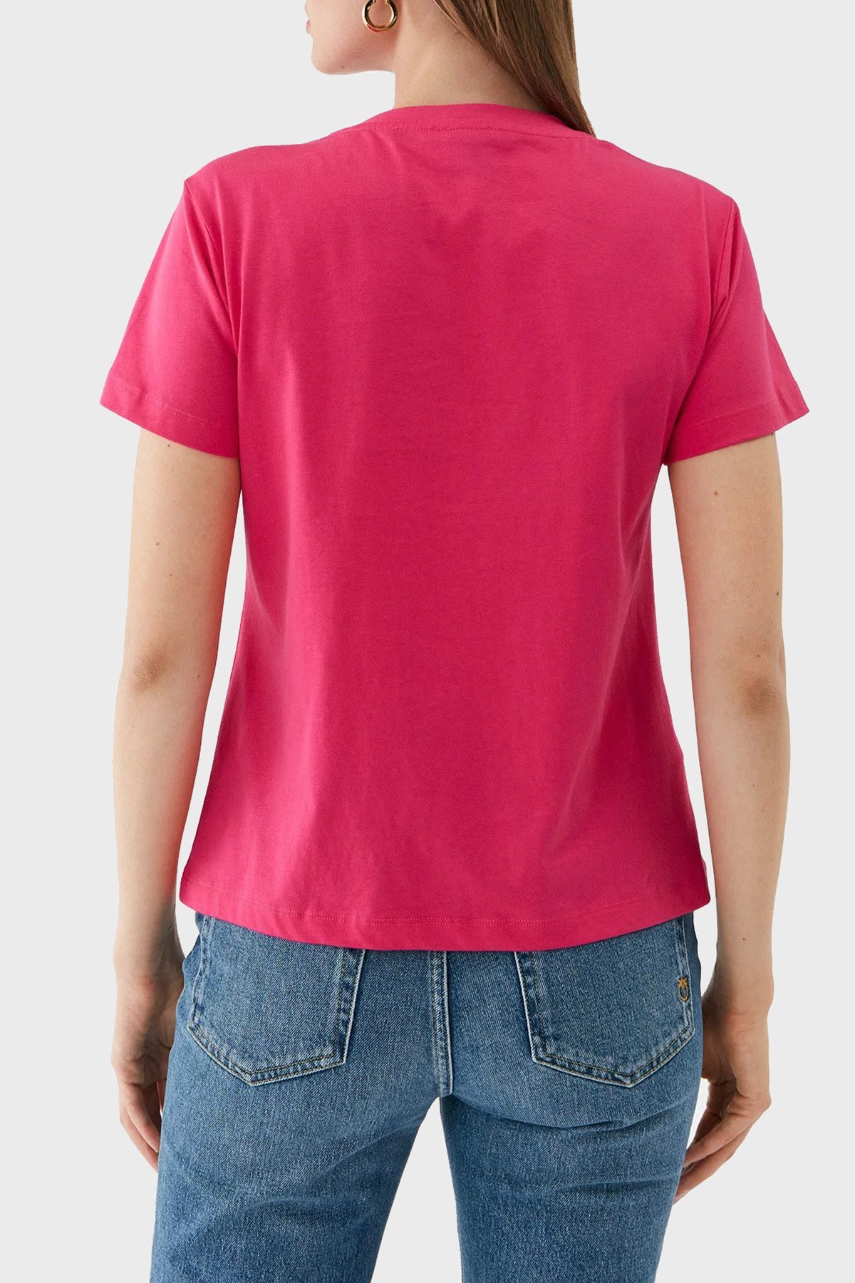 % 100 Pamuk Taş İşleme Motifli Regular Fit Bayan T Shirt 100535 A15D N17 PEMBE
