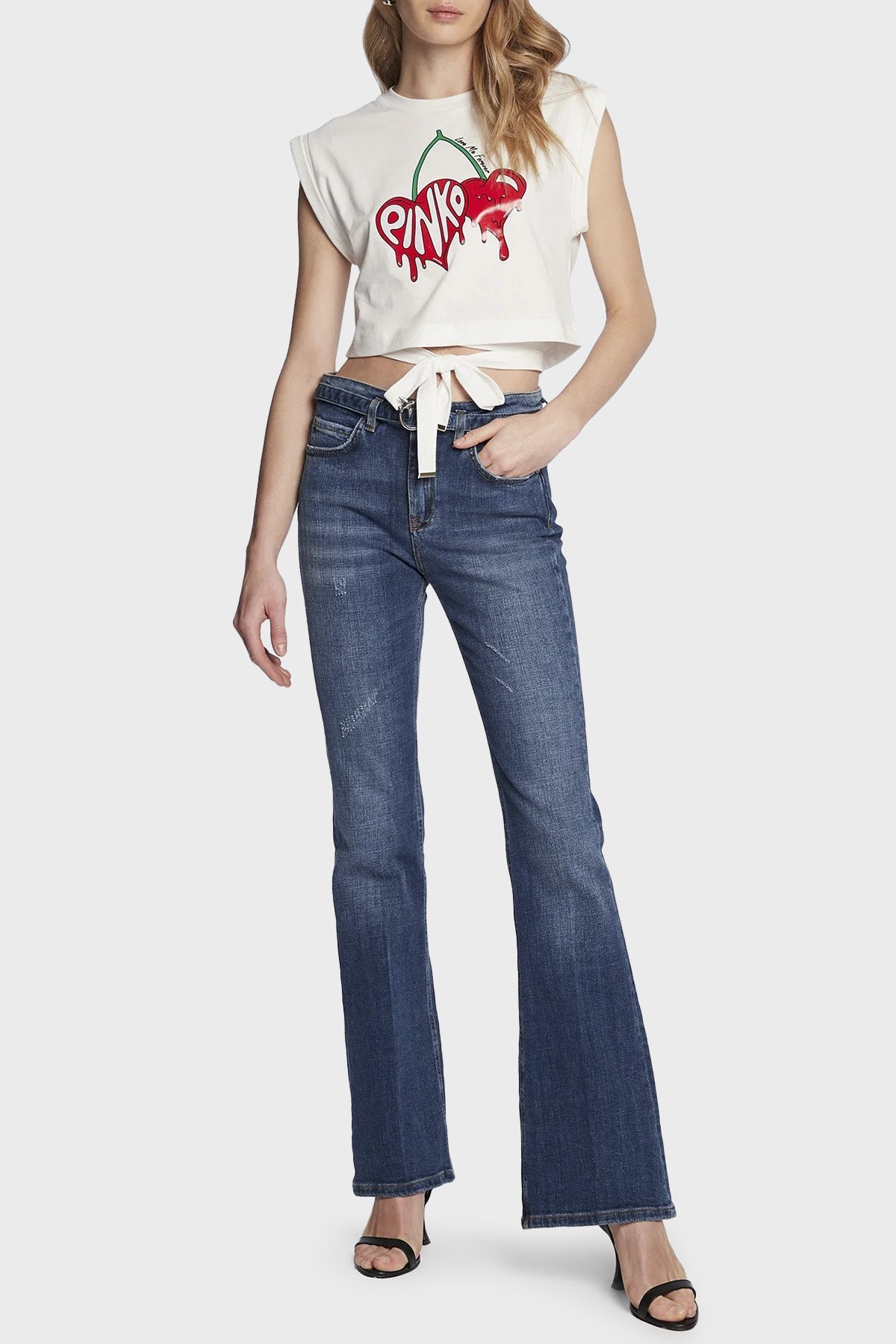 Baskılı Bağlama Detaylı Bisiklet Yaka % 100 Pamuk Regular Fit Bayan T Shirt 101123 A0U1 Z07 BEYAZ