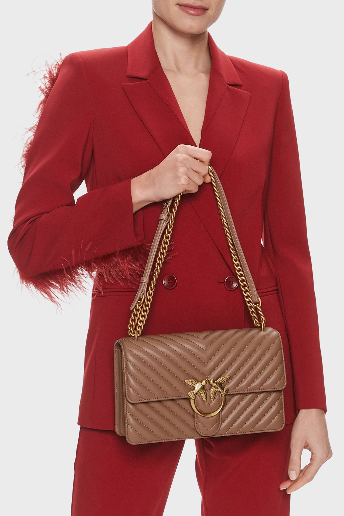 Hakiki Deri Ayarlanabilir Zincir Askılı Bayan Çanta 100941 A0GK D01Q KAHVE