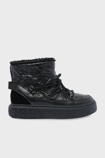 Hakiki Deri Kabartmalı Logo Baskılı Kalın Taban Bayan Kar Botu SS0101 T036 Z99 SİYAH