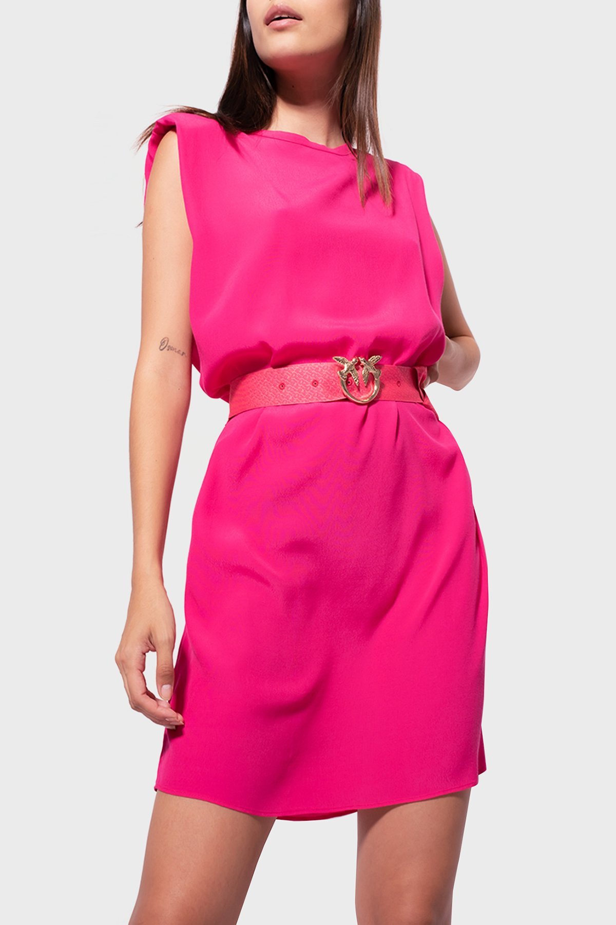 Kemerli Kolsuz Regular Fit Mini Bayan Elbise 101138 A0US WWE FUŞYA