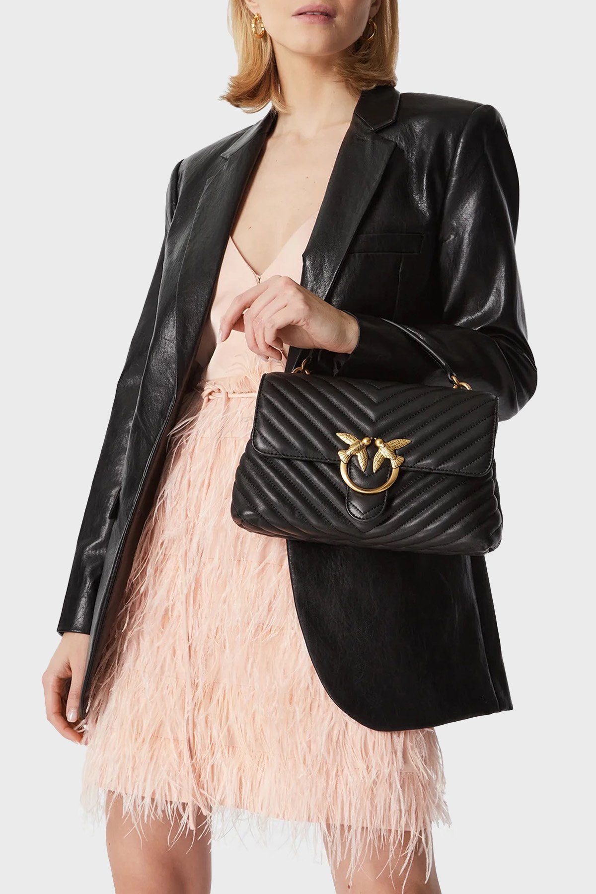 Logolu Çıkarılabilir Zincir Askılı % 100 Deri Bayan Çanta 1P22UM A03Z Z99Q SİYAH