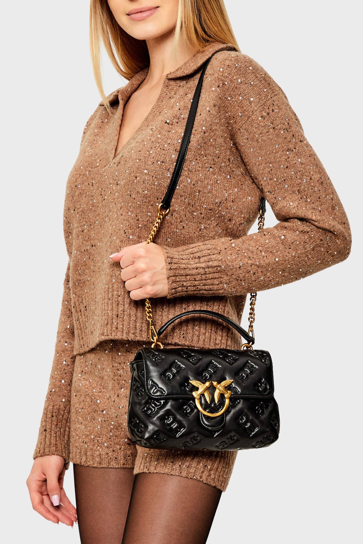Logolu Çıkarılabilir Zincir Askılı Bayan Çanta 100044 A2JX Z99Q SİYAH