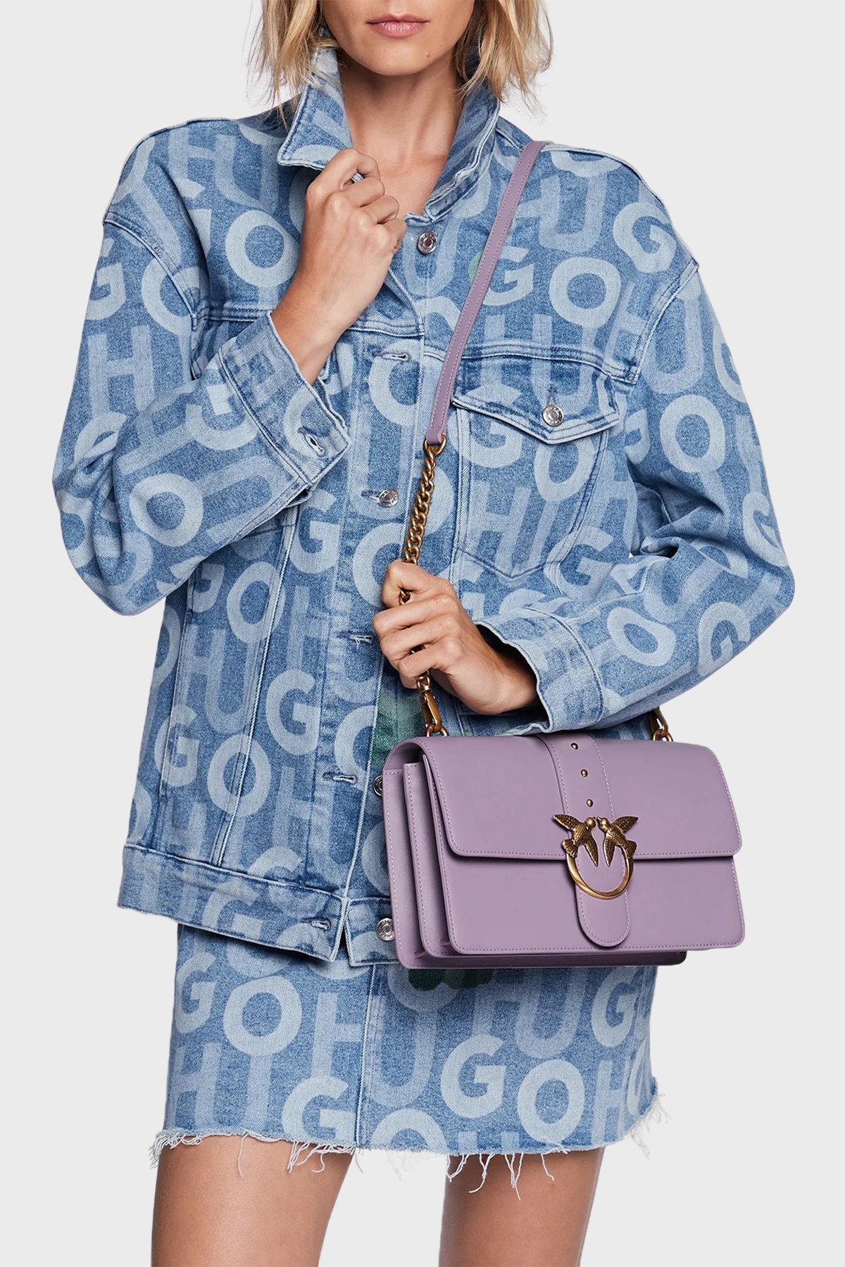Logolu Çıkarılabilir Zincir Askılı Hakiki Deri Bayan Çanta 100053 A0F1 Y13Q LİLA