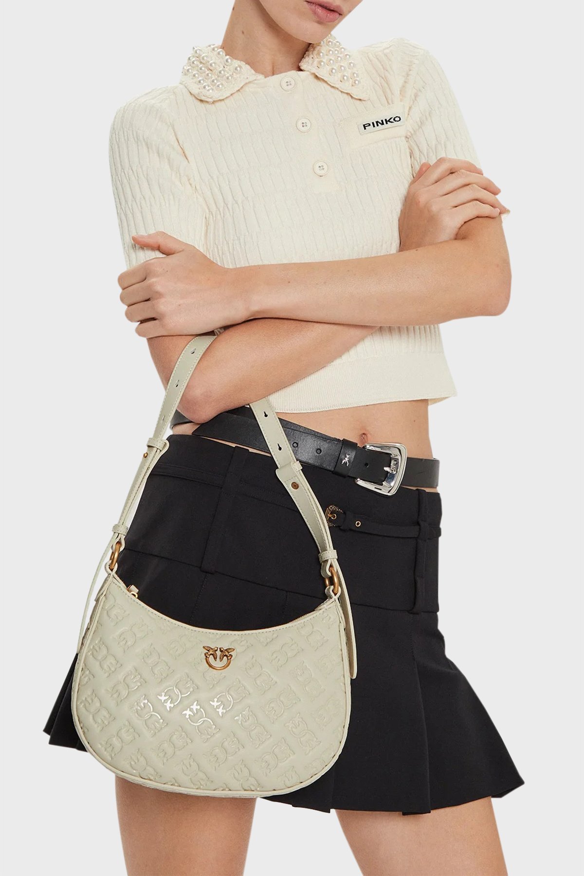 Logolu Hakiki Deri Ayarlanabilir Omuz Askılı Bayan Çanta 102790 A1YB Z14Q BEYAZ