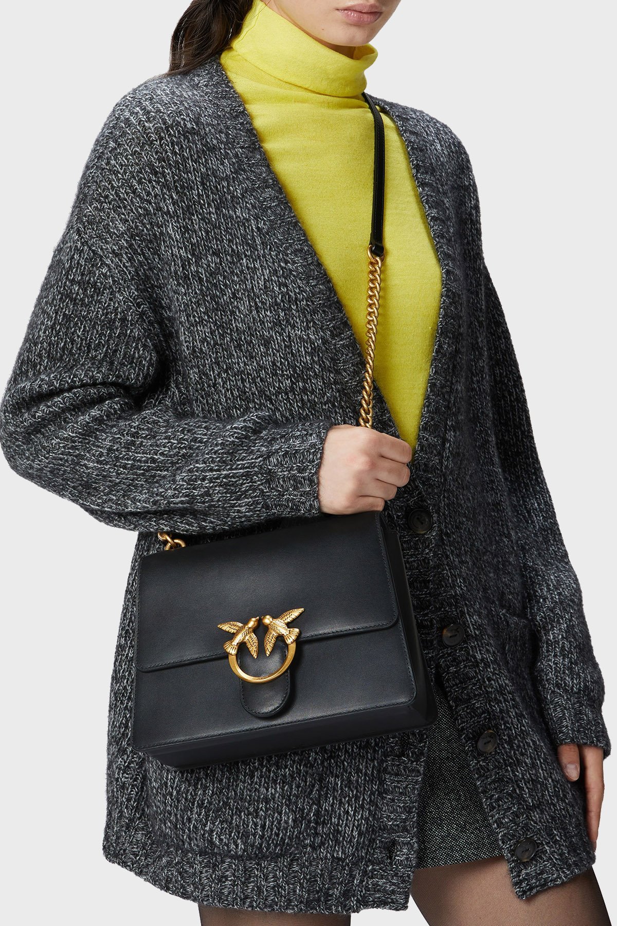 Logolu Hakiki Deri Çıkarılabilir Askılı Bayan Çanta 100066 A0F1 Z99Q SİYAH