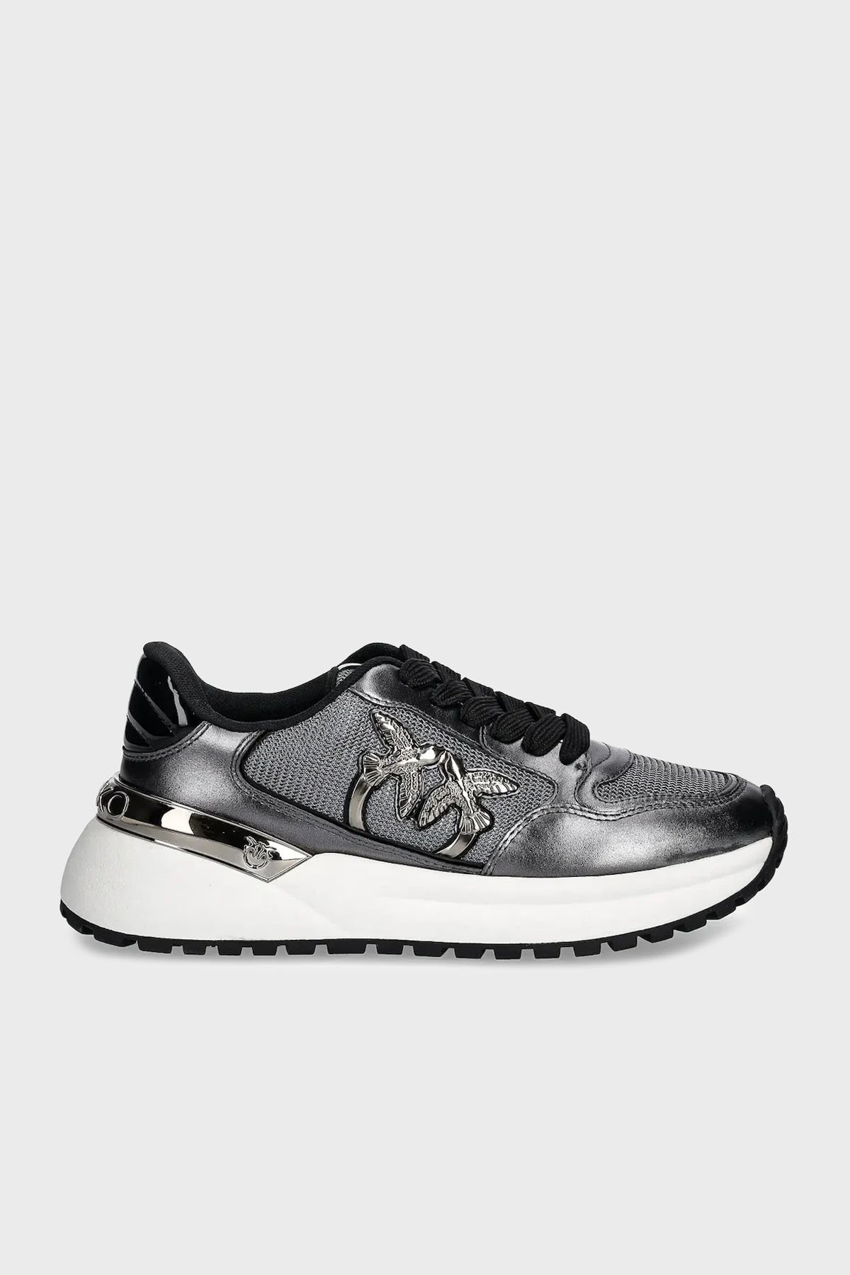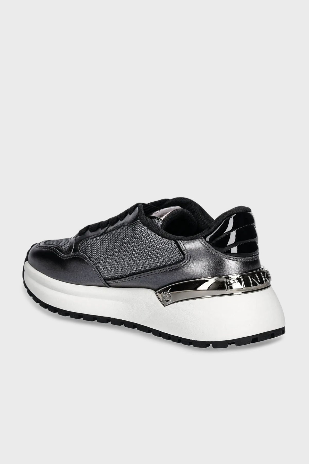 Logolu Hakiki Deri Kalın Taban Sneaker Bayan Ayakkabı SS0055 P105 KZ7 KOYU GRİ
