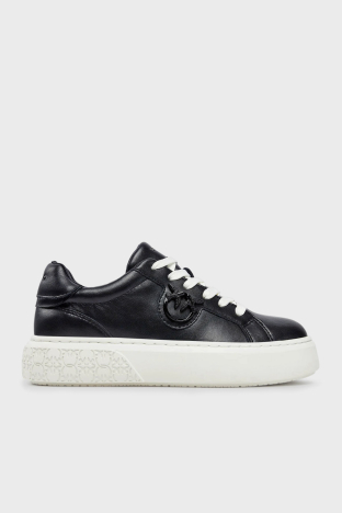 Logolu Hakiki Deri Paltform Taban Sneaker Bayan Ayakkabı SS0071 P001 Z99 SİYAH