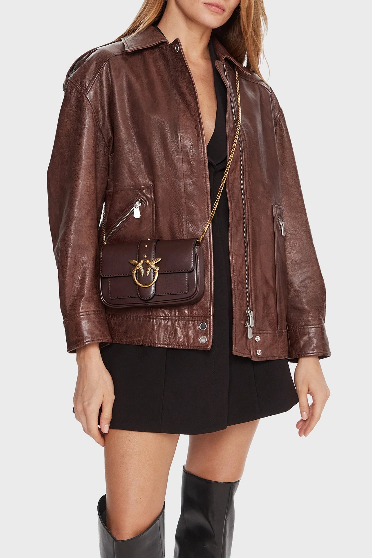 Logolu Hakiki Deri Zincir Askılı Bayan Çanta 100061 A0F1 L86Q BORDO