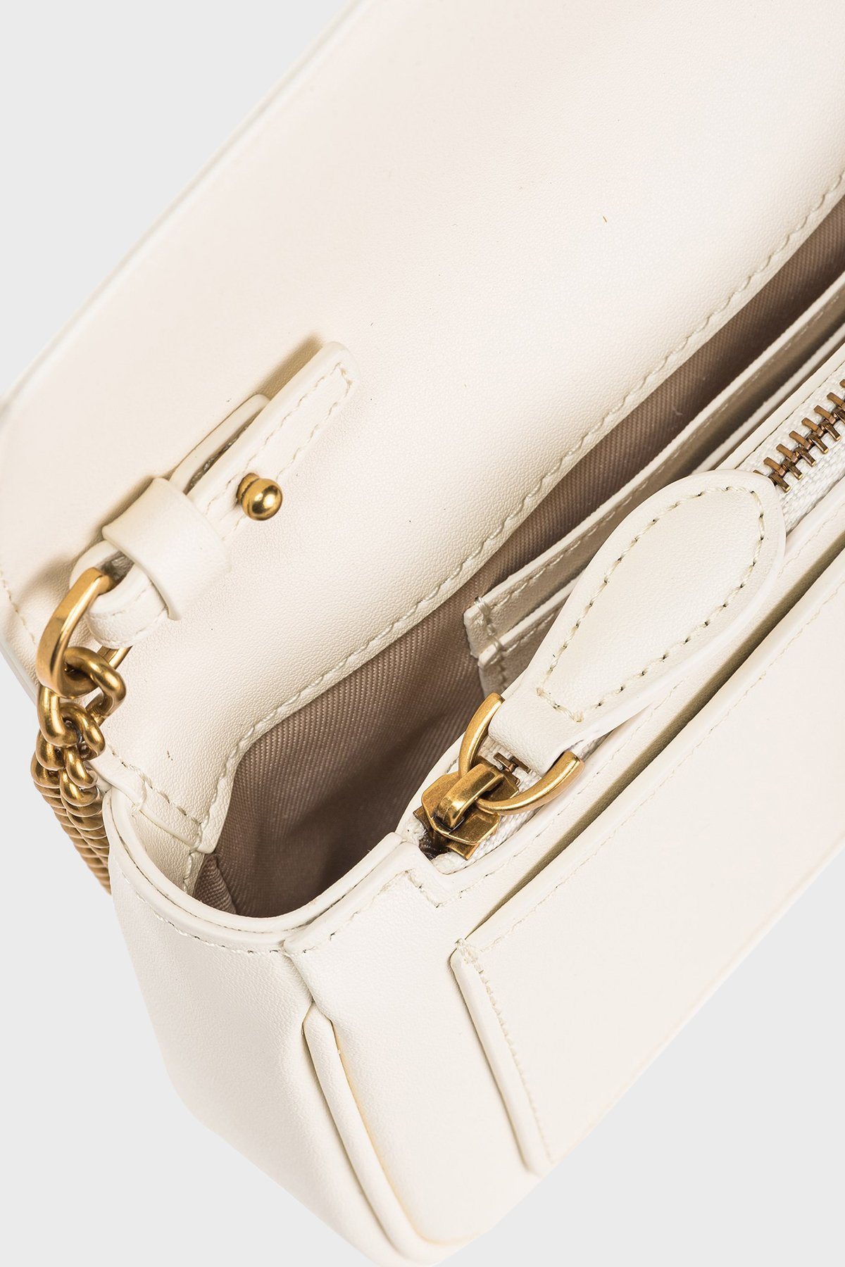 Logolu Zincir Askılı Deri Bayan Çanta 100061 A0F1 Z14Q EKRU
