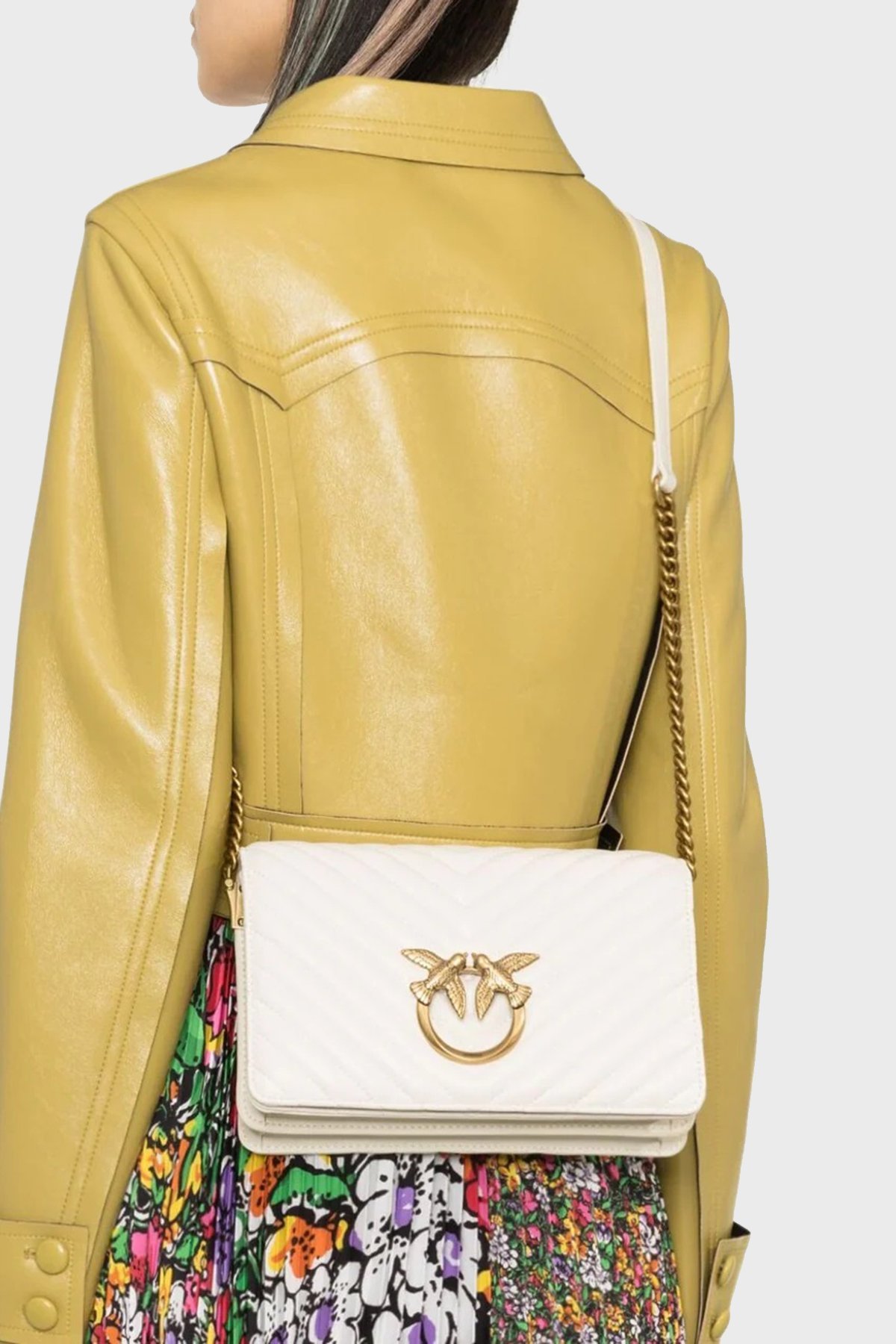 Logolu Zincir Askılı Deri Bayan Çanta 100063 A0GKZ 14Q EKRU