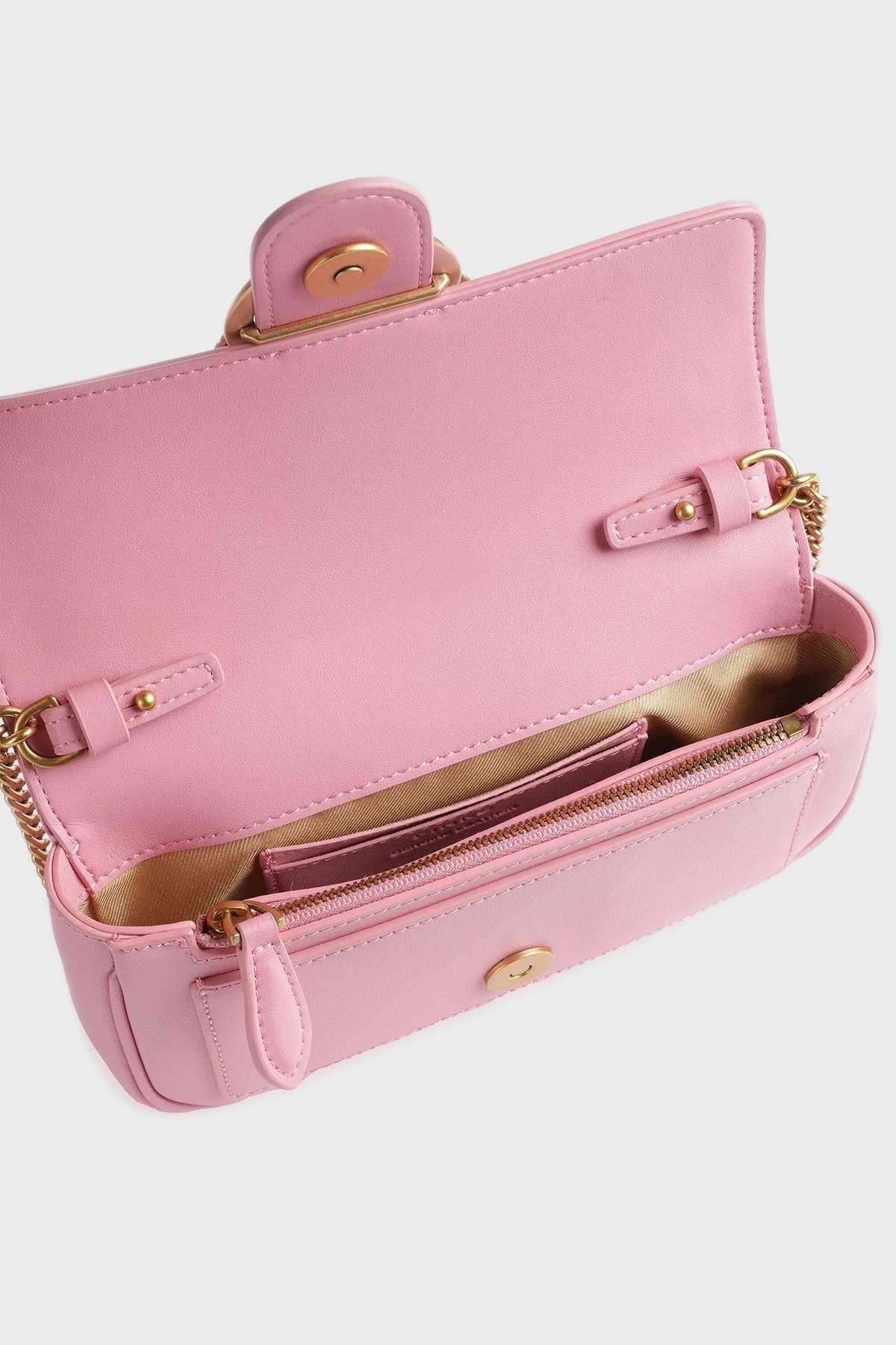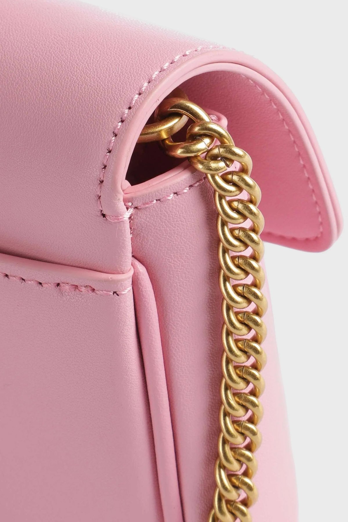 Logolu Zincir Askılı Hakiki Deri Bayan Çanta 100061 A0F1 P31Q PEMBE