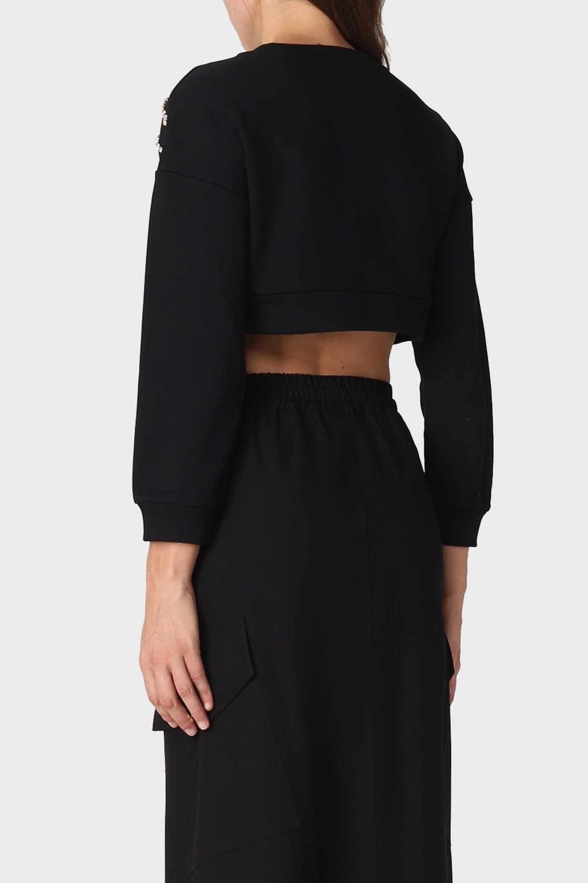 Pamuklu Elmas Logo İşlemeli Regular Fit Uzun Kollu Crop Bayan Sweat 101608 A12I Z99 SİYAH