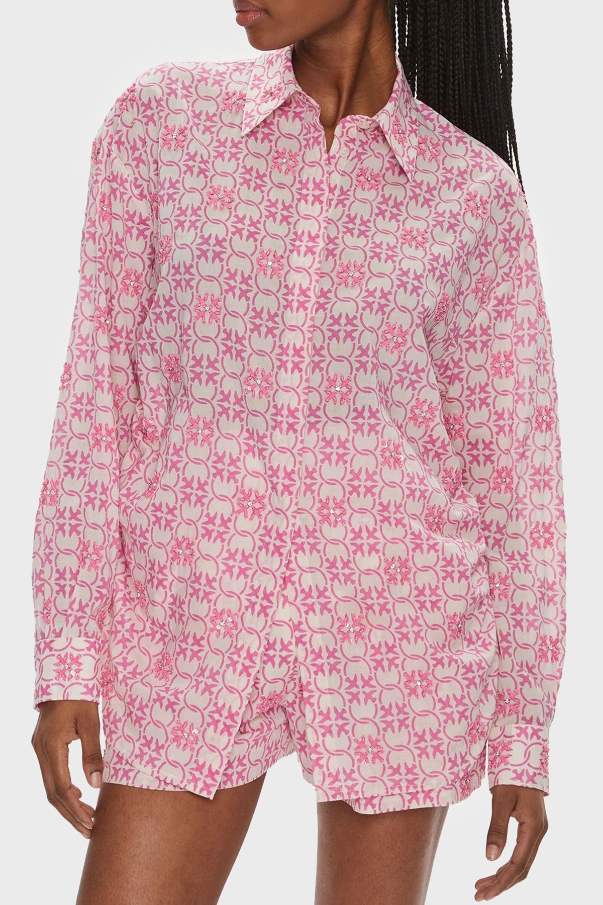 Pamuklu Regular Fit Müslin Bayan Gömlek 103194A1Q1DN3 Pembe-Ekru