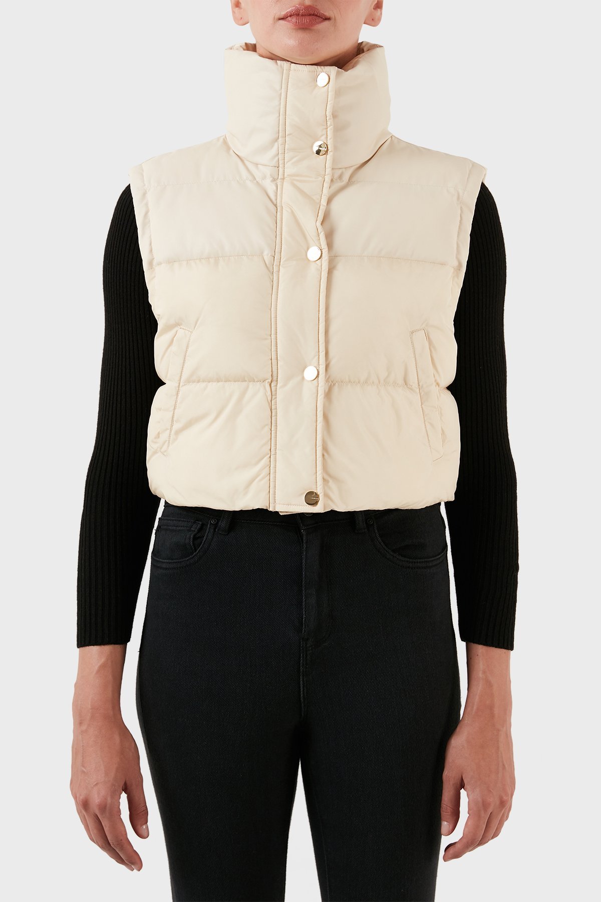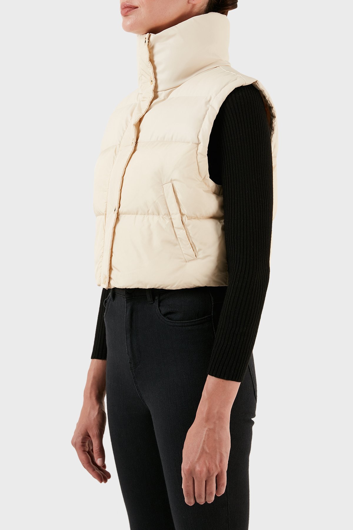 Regular Fit Dik Yaka Şişme Crop Bayan Yelek 101734 A11P C16 BEJ