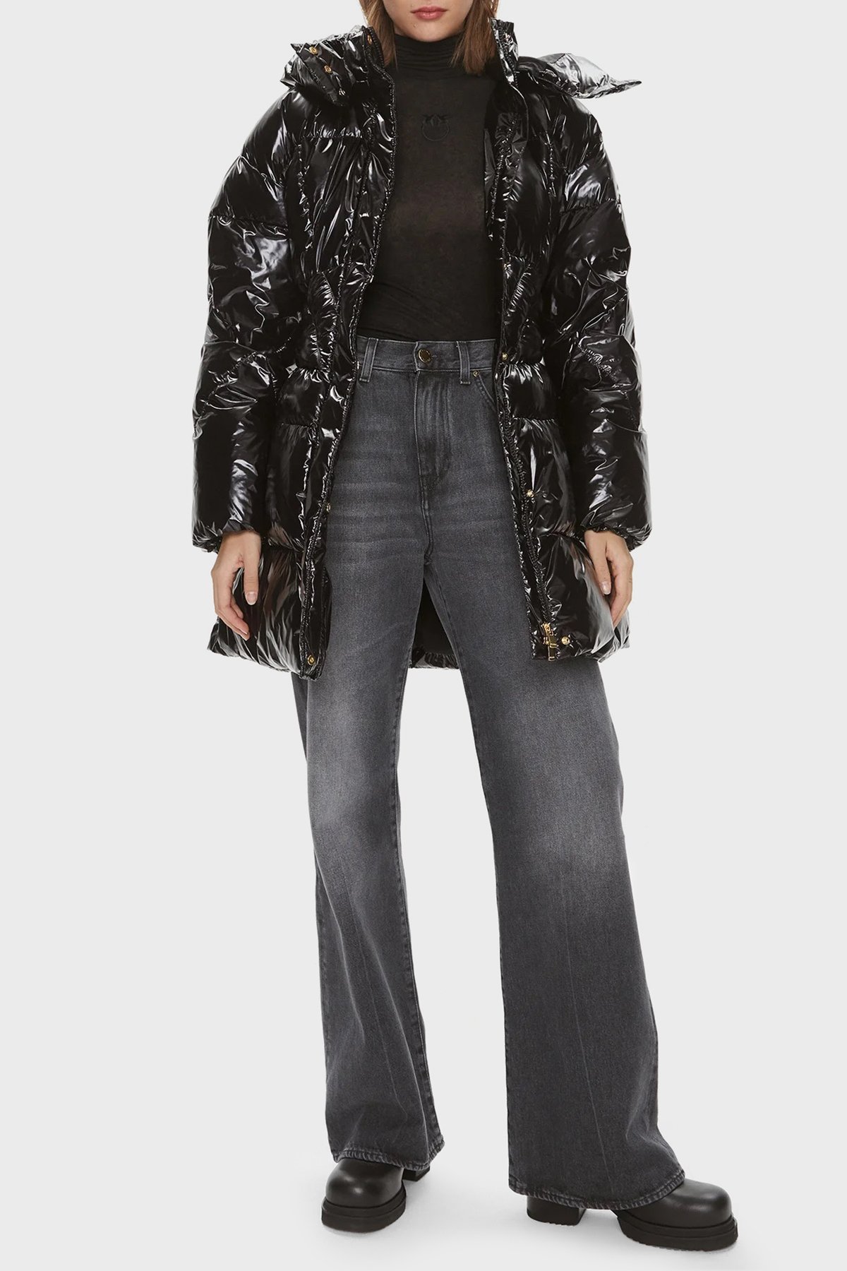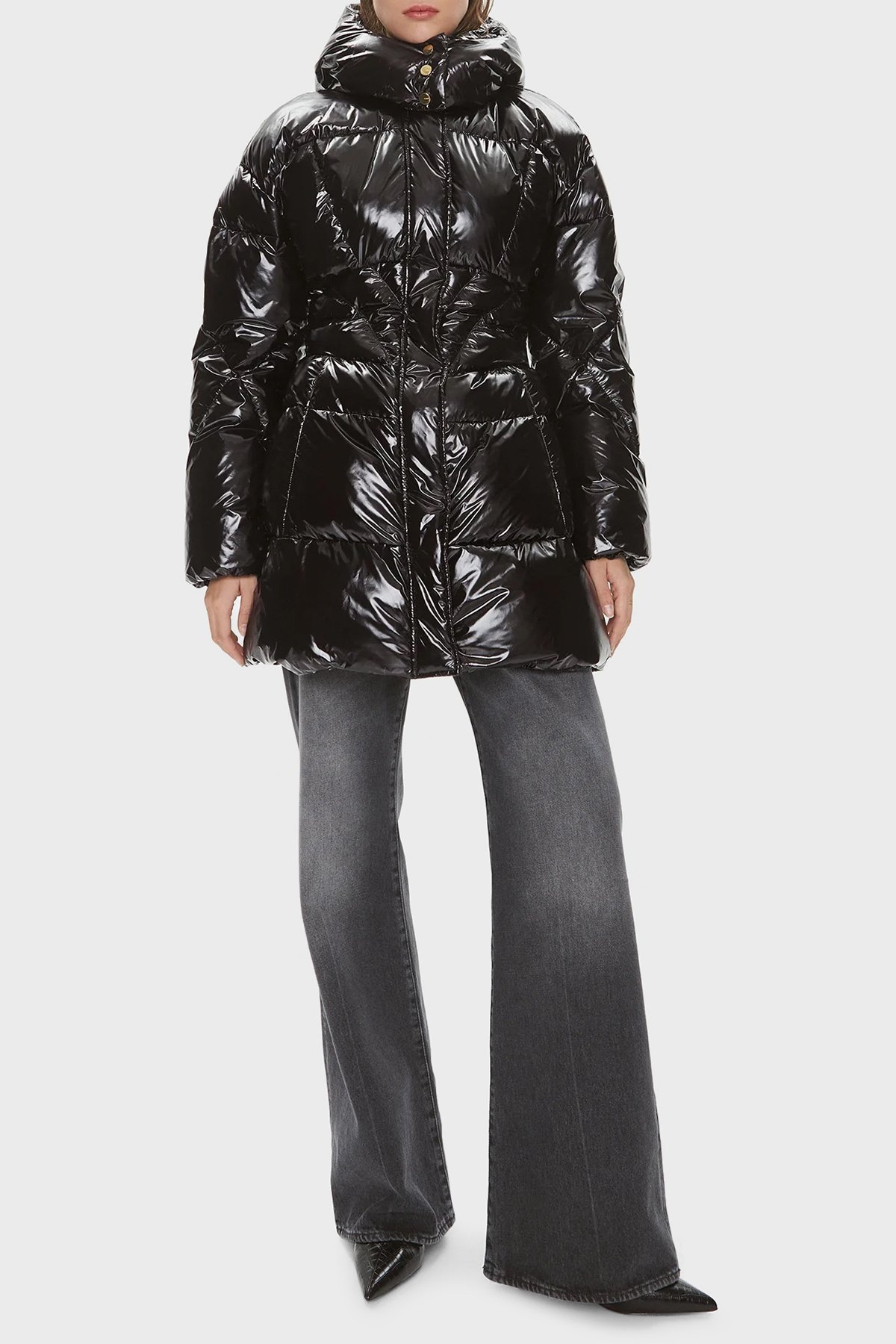 Regular Fit Kapüşonlu Parlak Şişme Bayan Mont 101595 A00N Z99 SİYAH