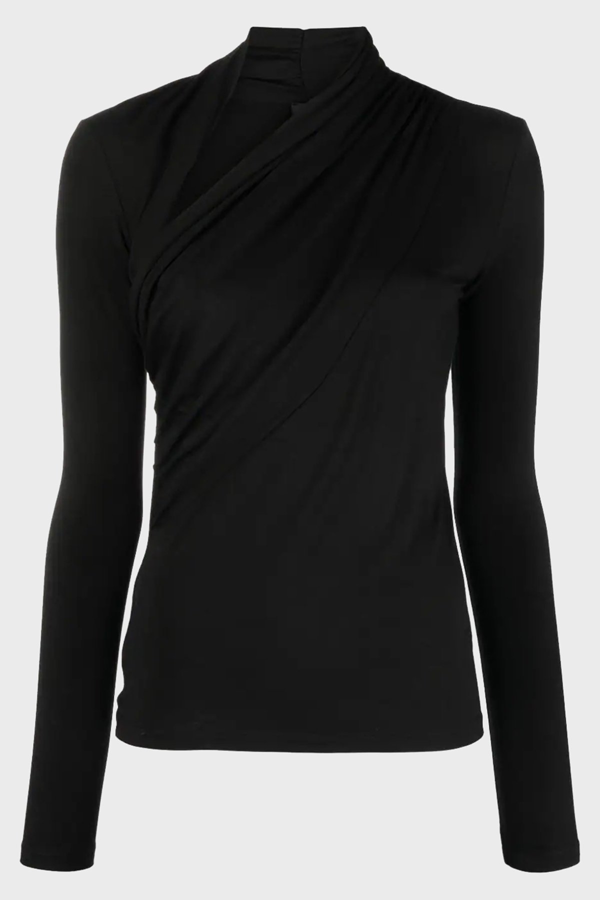 Slim Fit Jarse Asimetrik Drapeli Bayan Bluz 102363 A1DE Z99 SİYAH