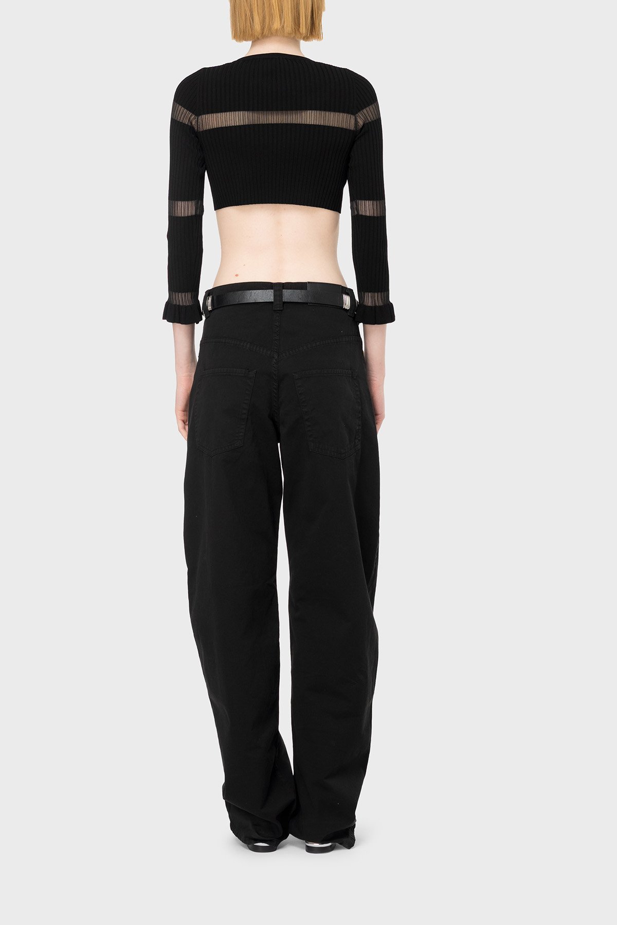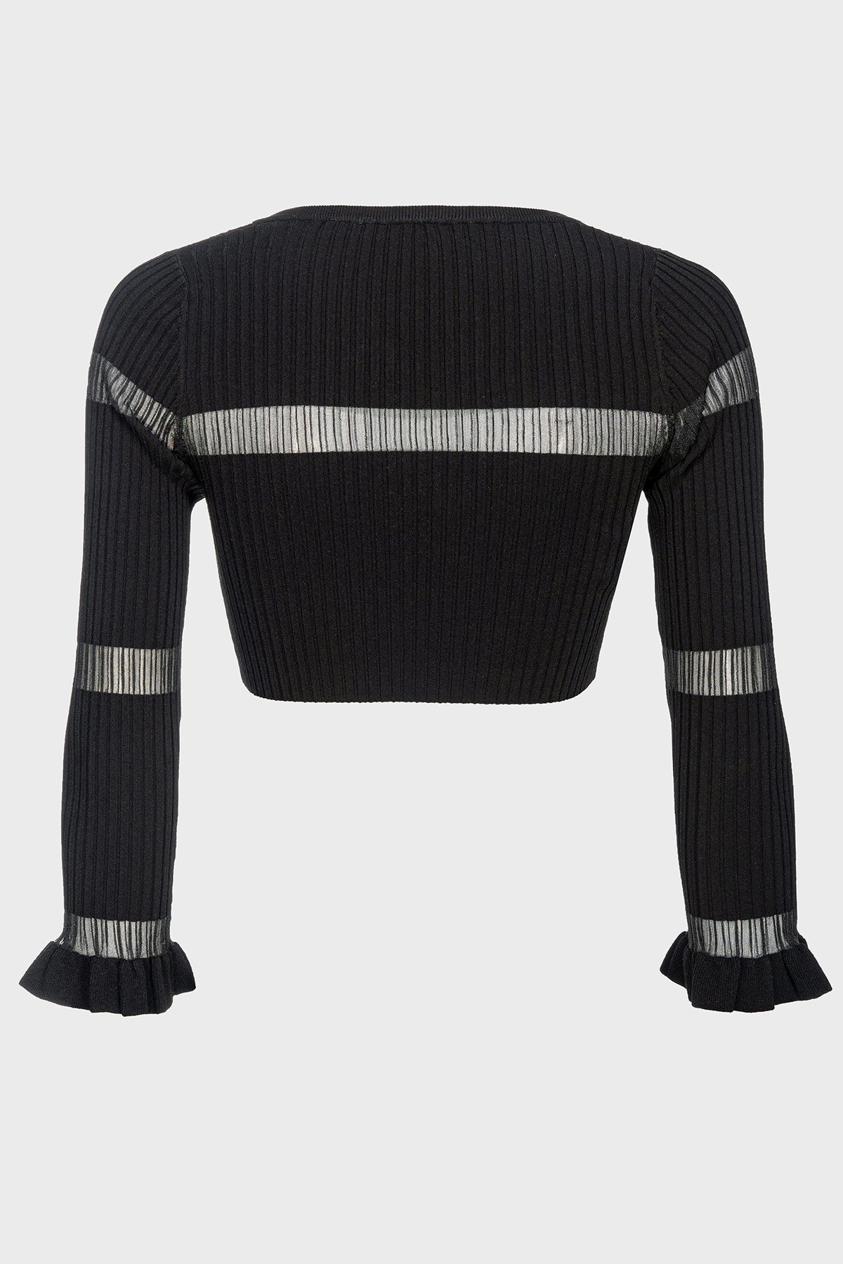 Slim Fit Transparan Şeritli Crop Bayan Hırka 102969A1NAZ99 SİYAH