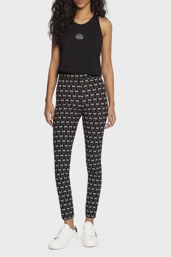 Tamamı Logo Baskılı Dar Kesim Fermuarlı Bayan Tayt 100110 8583 ZCB SİYAH