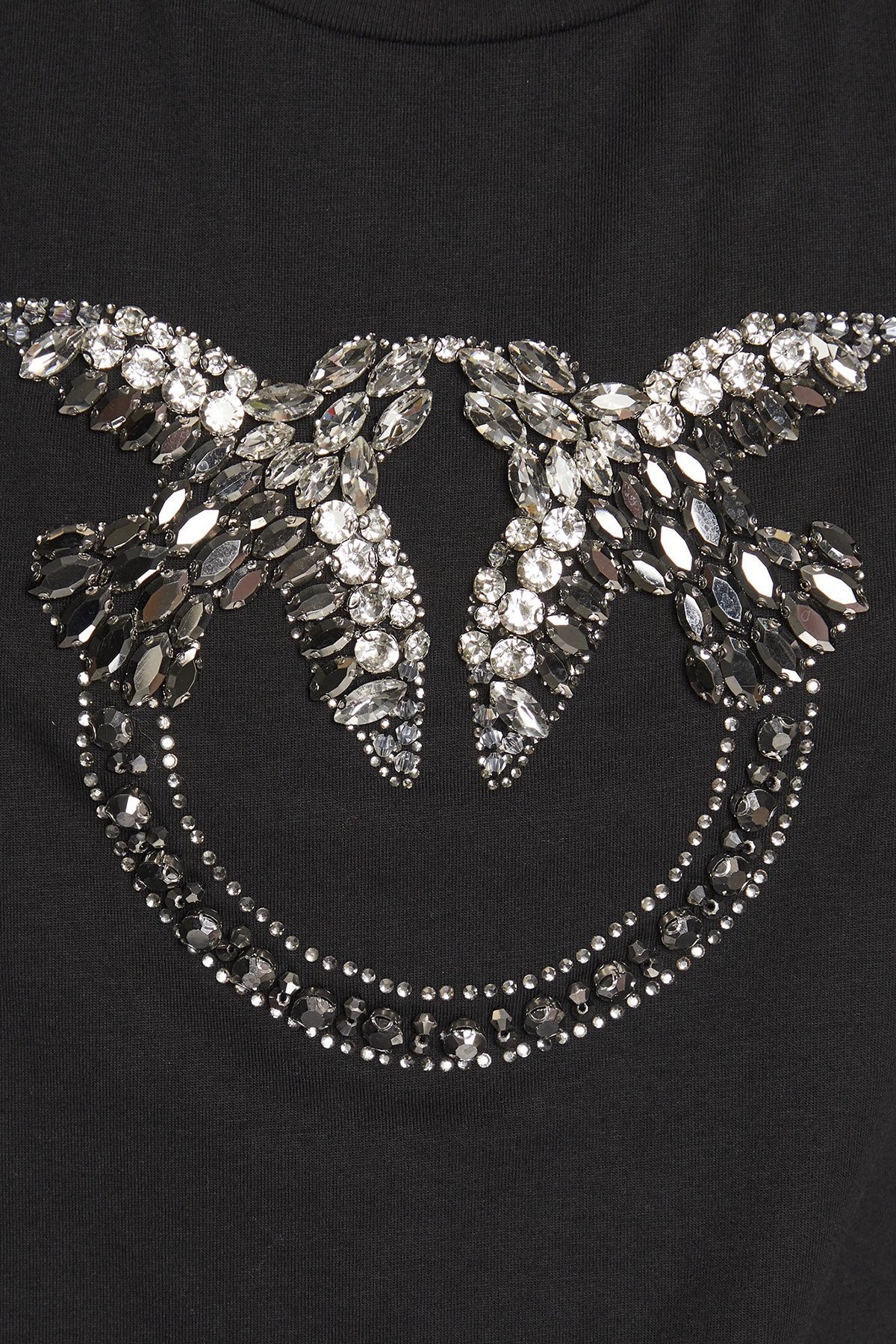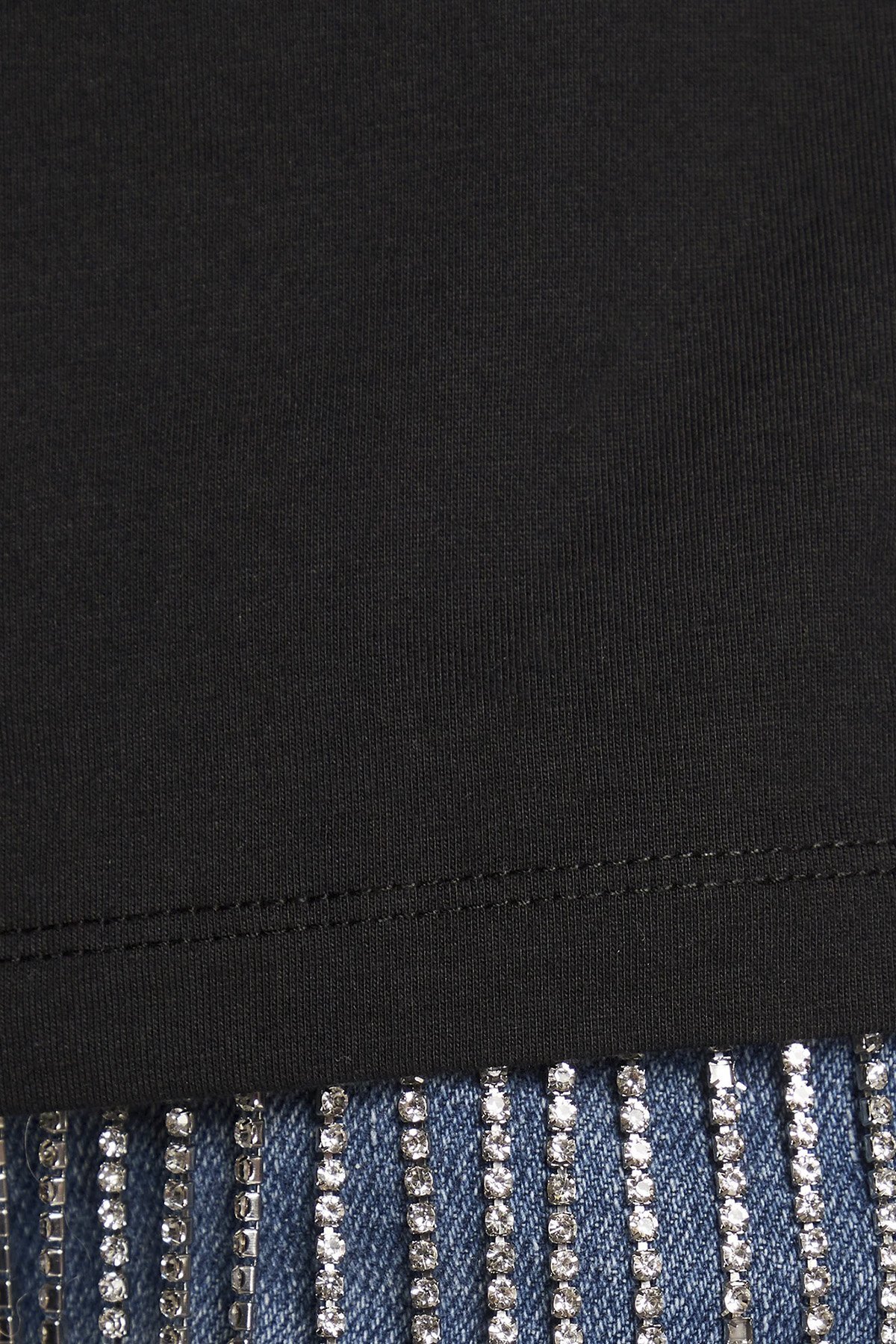 Taşlı Logo Bisiklet Yaka % 100 Pamuk Regular Fit Bayan T Shirt 100535 A0MA Z99 SİYAH