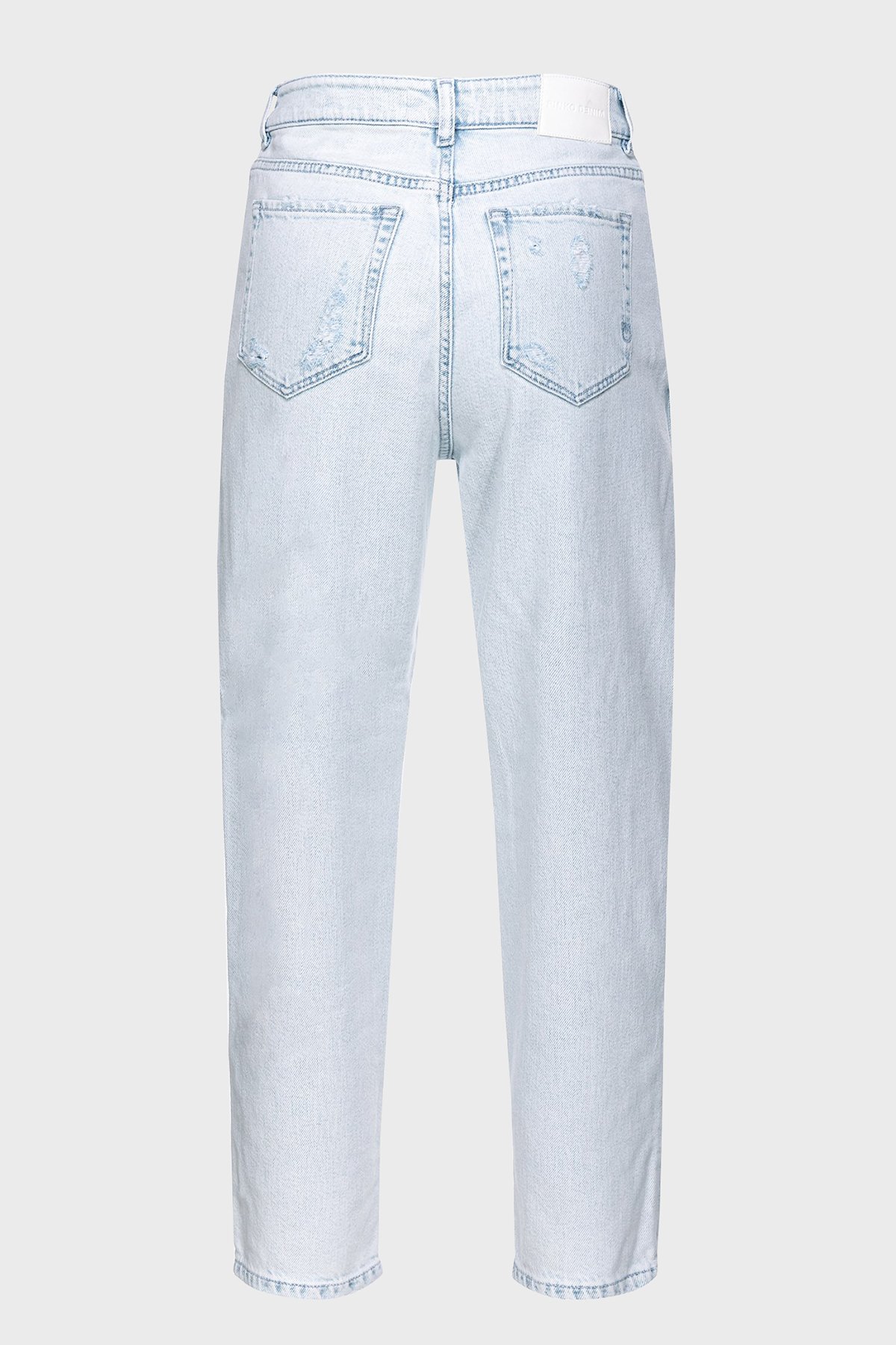 Yırtık Detaylı Yüksek Bel Mom Jeans Kadın Kot Pantolon 100379A1JKPJQ Buz Mavisi