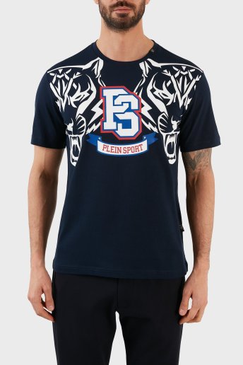Logolu Bisiklet Yaka % 100 Pamuk Erkek T Shirt TIPS119TN85 LACİVERT