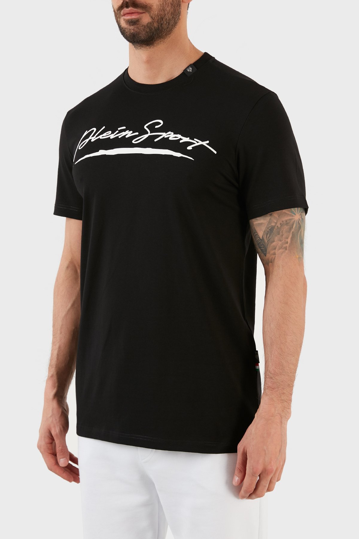 Logolu Bisiklet Yaka Pamuklu Erkek T Shirt TIPS108TN99 SİYAH