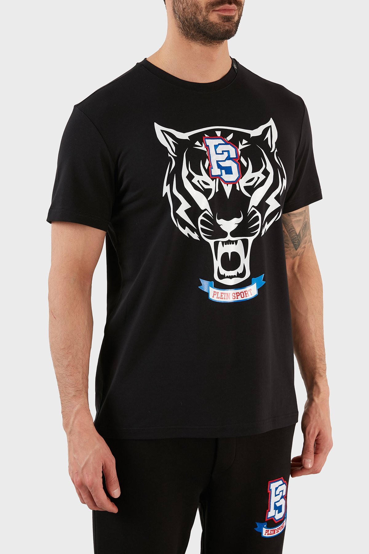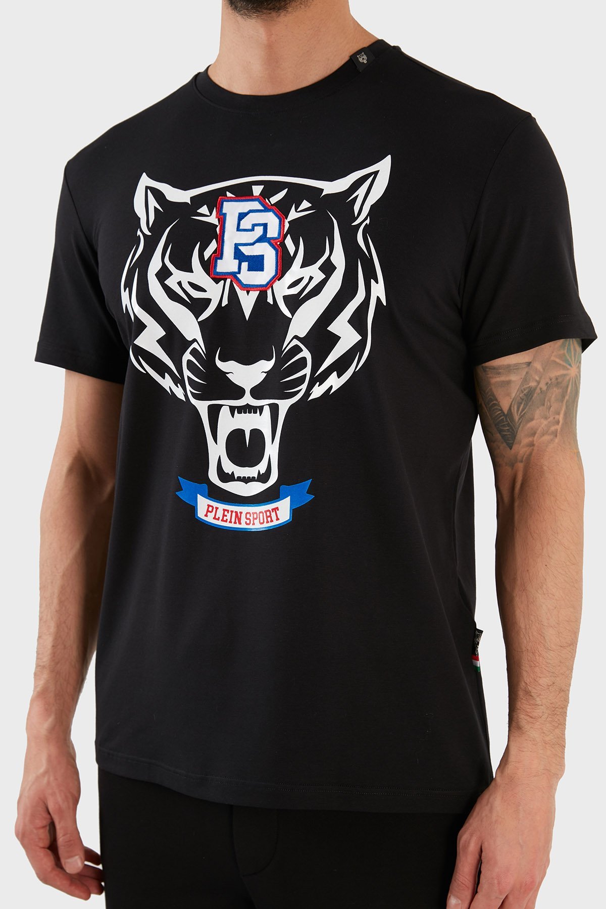 Logolu Bisiklet Yaka Pamuklu Erkek T Shirt TIPS120TN99 SİYAH