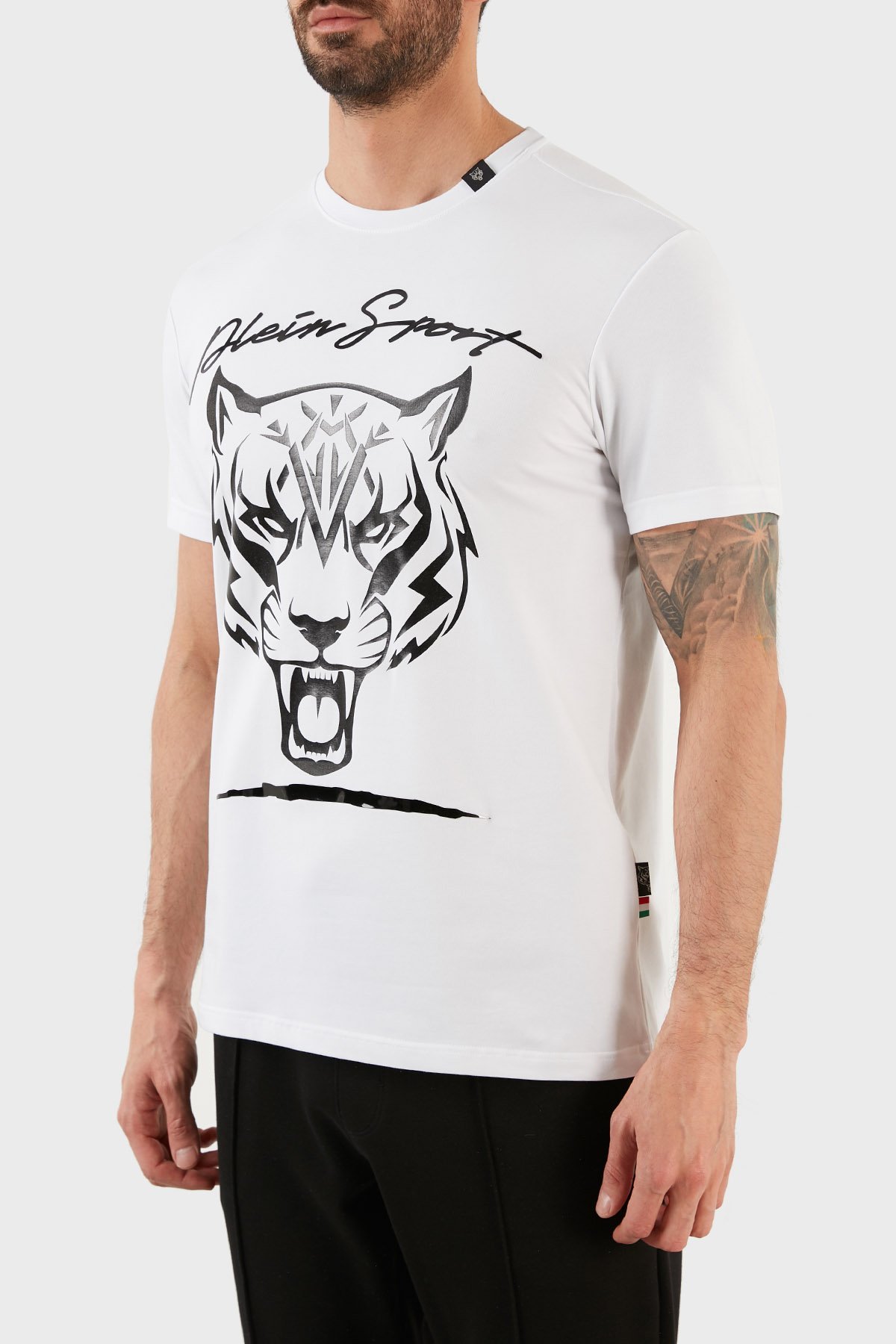 Logolu Bisiklet Yaka Pamuklu Erkek T Shirt TIPS123IT01 BEYAZ