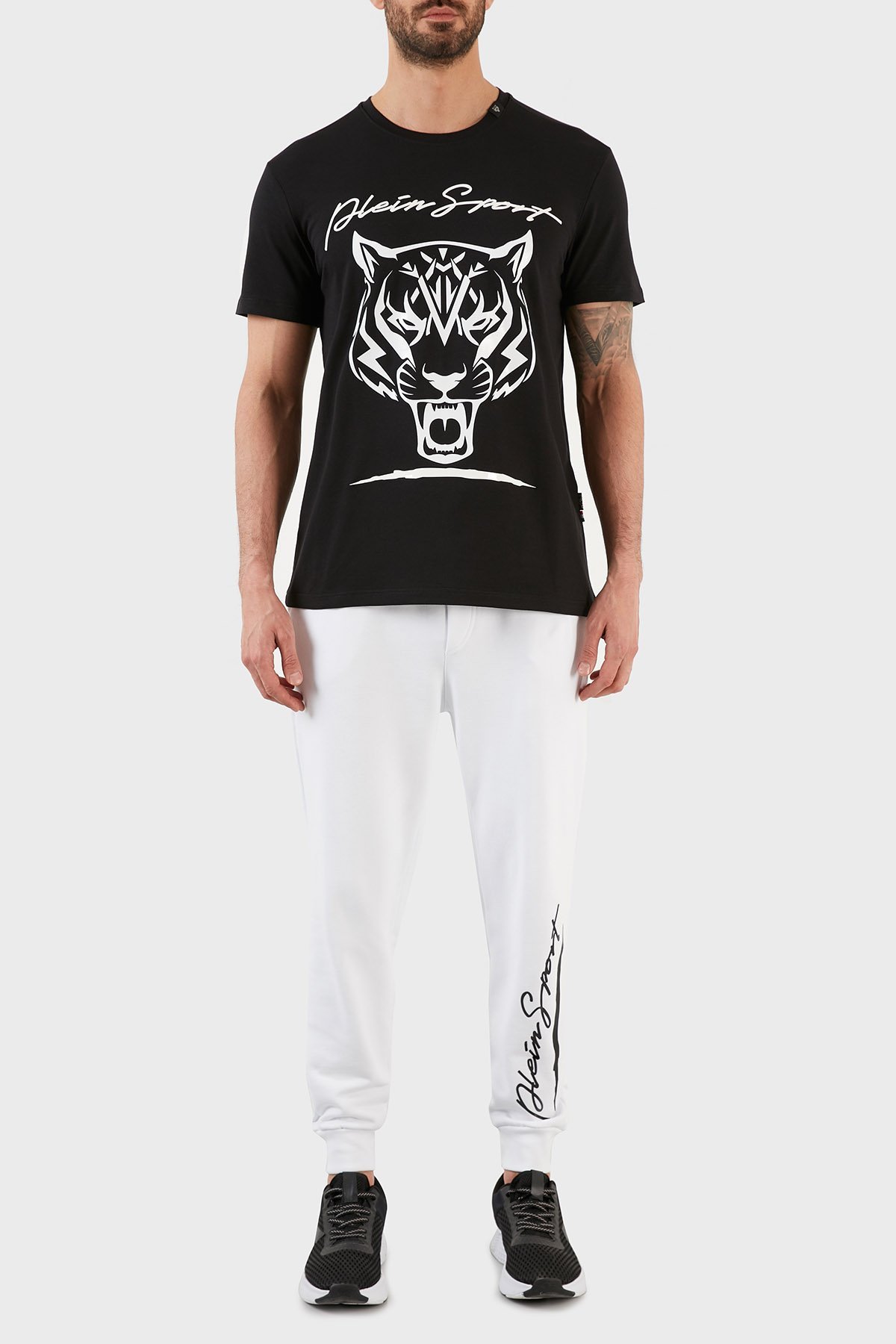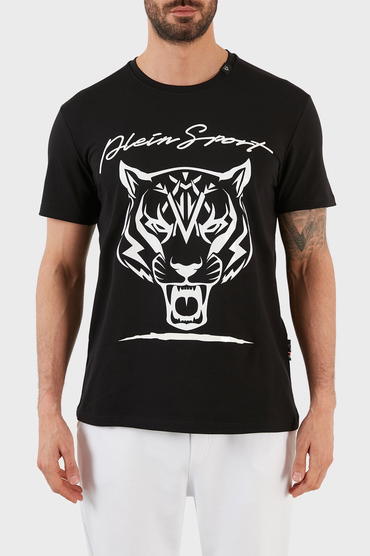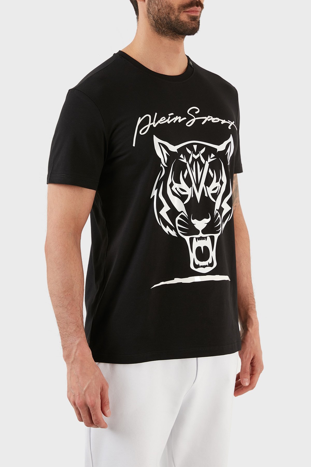 Logolu Bisiklet Yaka Pamuklu Erkek T Shirt TIPS123IT99 SİYAH