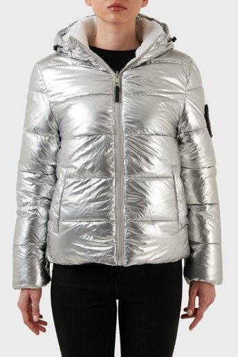 Logolu Çift Taraflı Kapüşonlu Bayan Mont DPPS20411 GÜMÜŞ