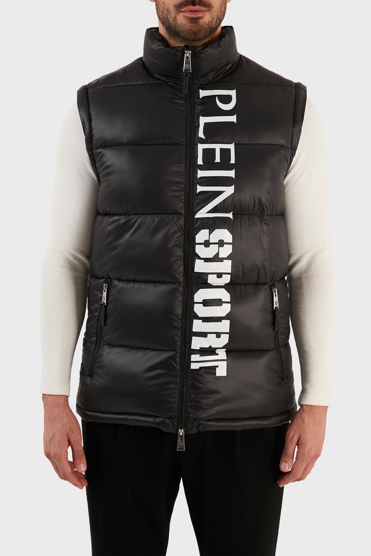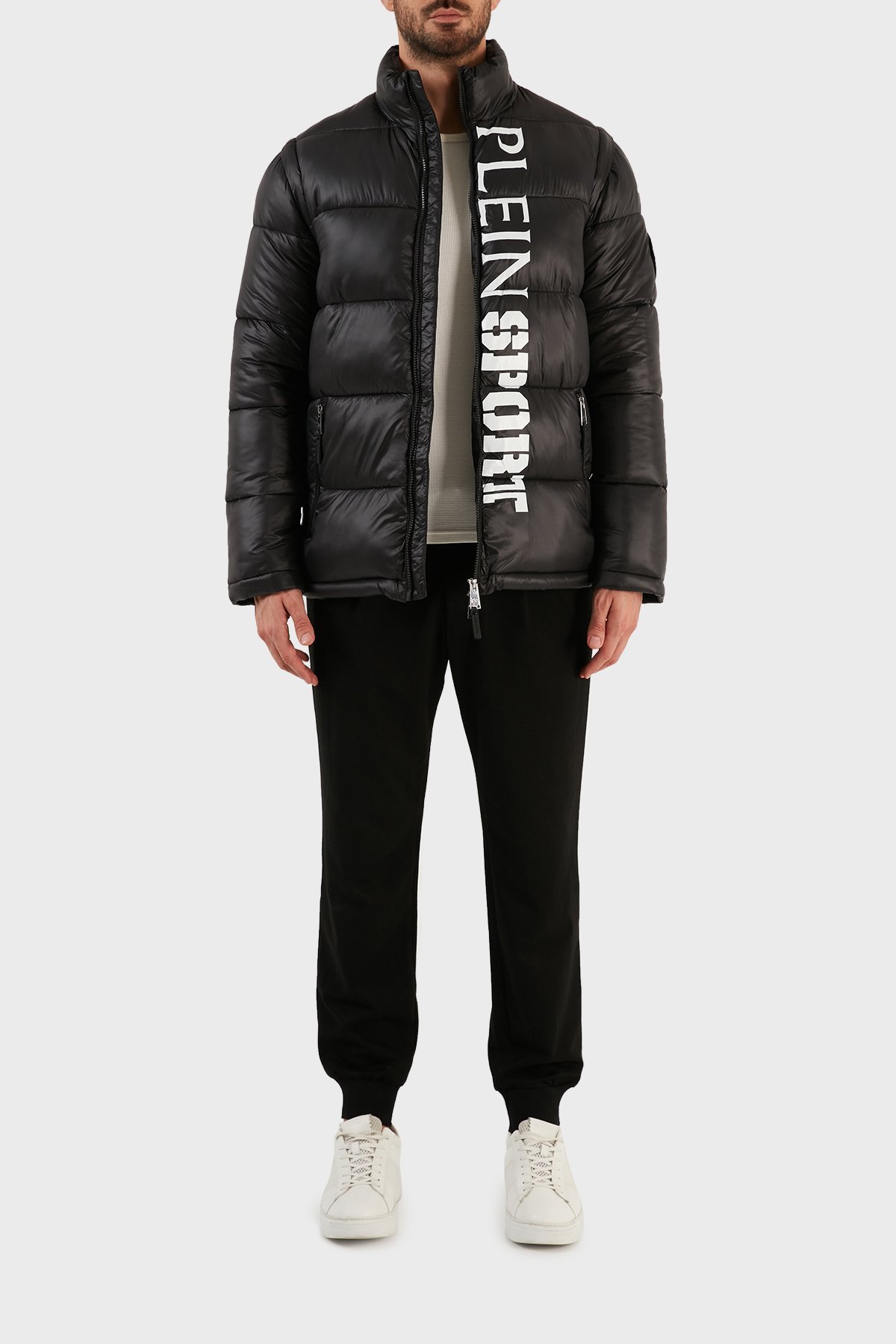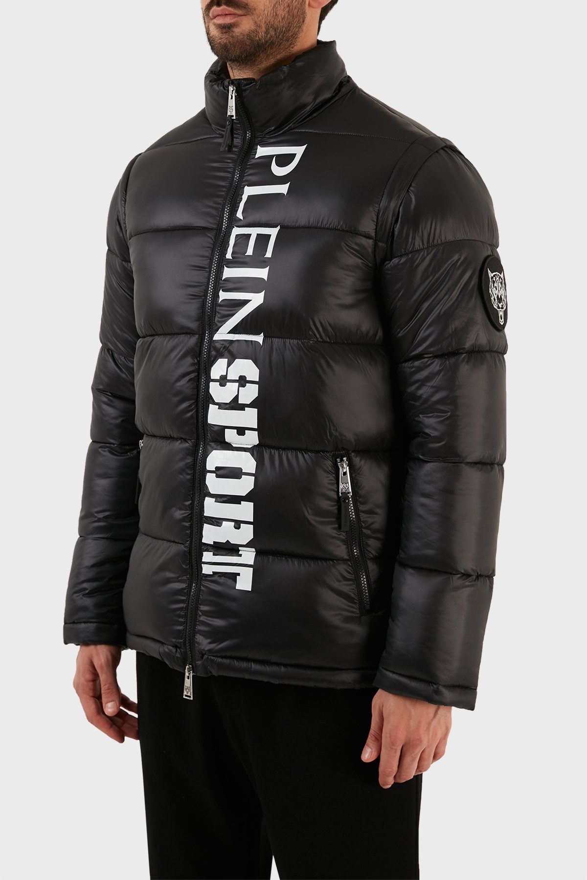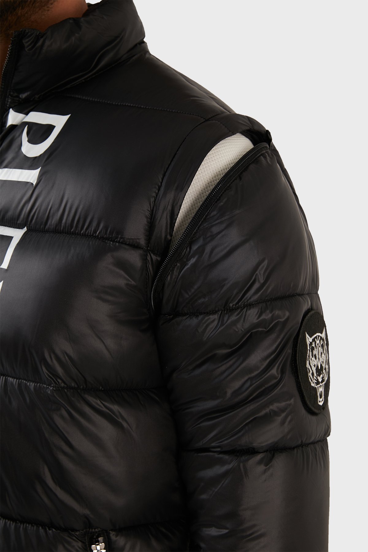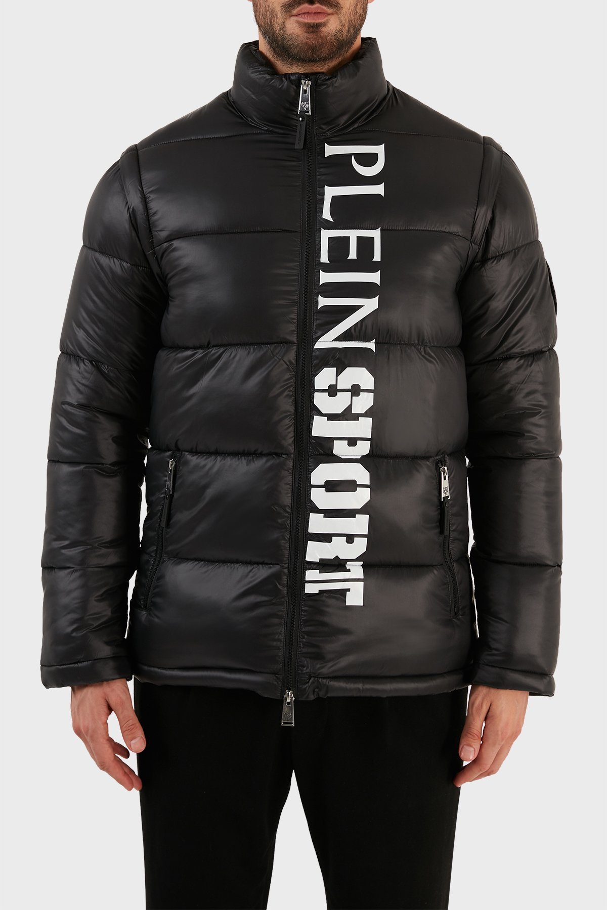 Logolu Çıkarılabilir Kol Detaylı Yalıtımlı Dik Yaka Erkek Mont UPPS10799 SİYAH
