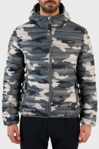 Logolu Kamuflaj Desenli Yalıtımlı Kapüşonlu Erkek Mont UPPS10332 KAMUFLAJ-HAKI