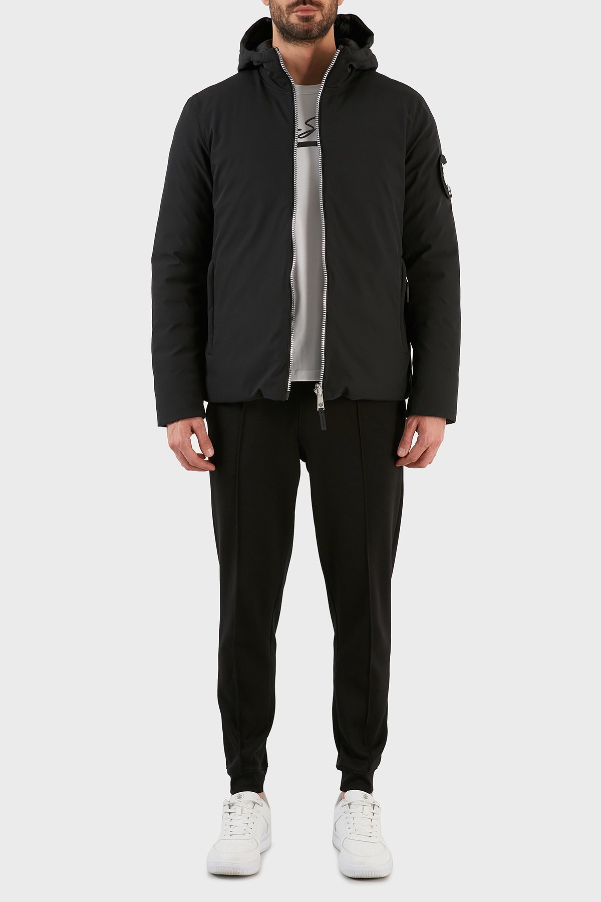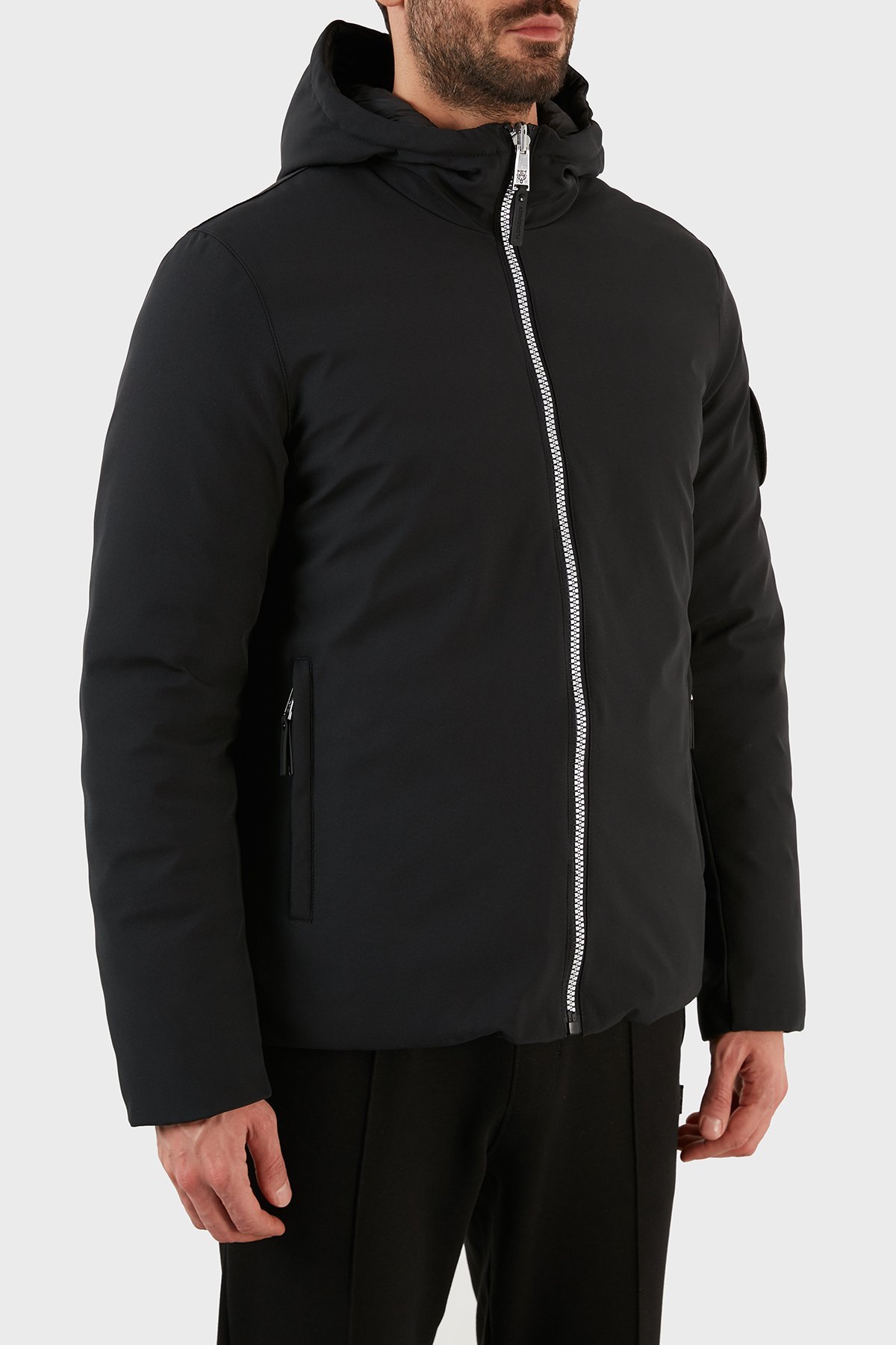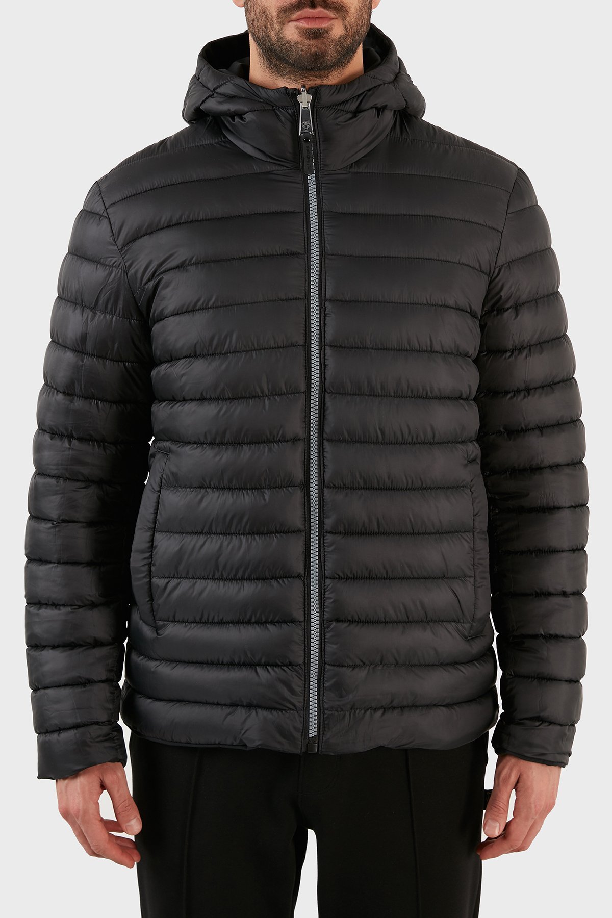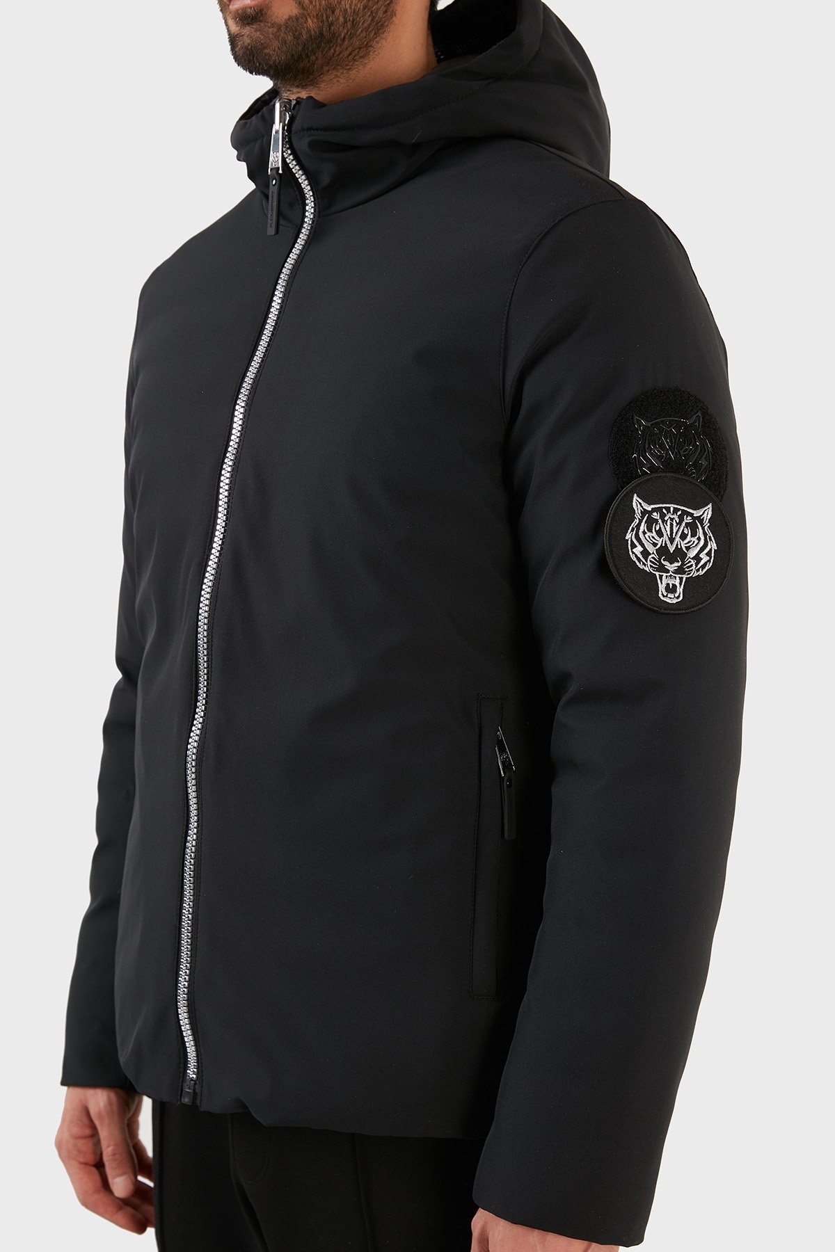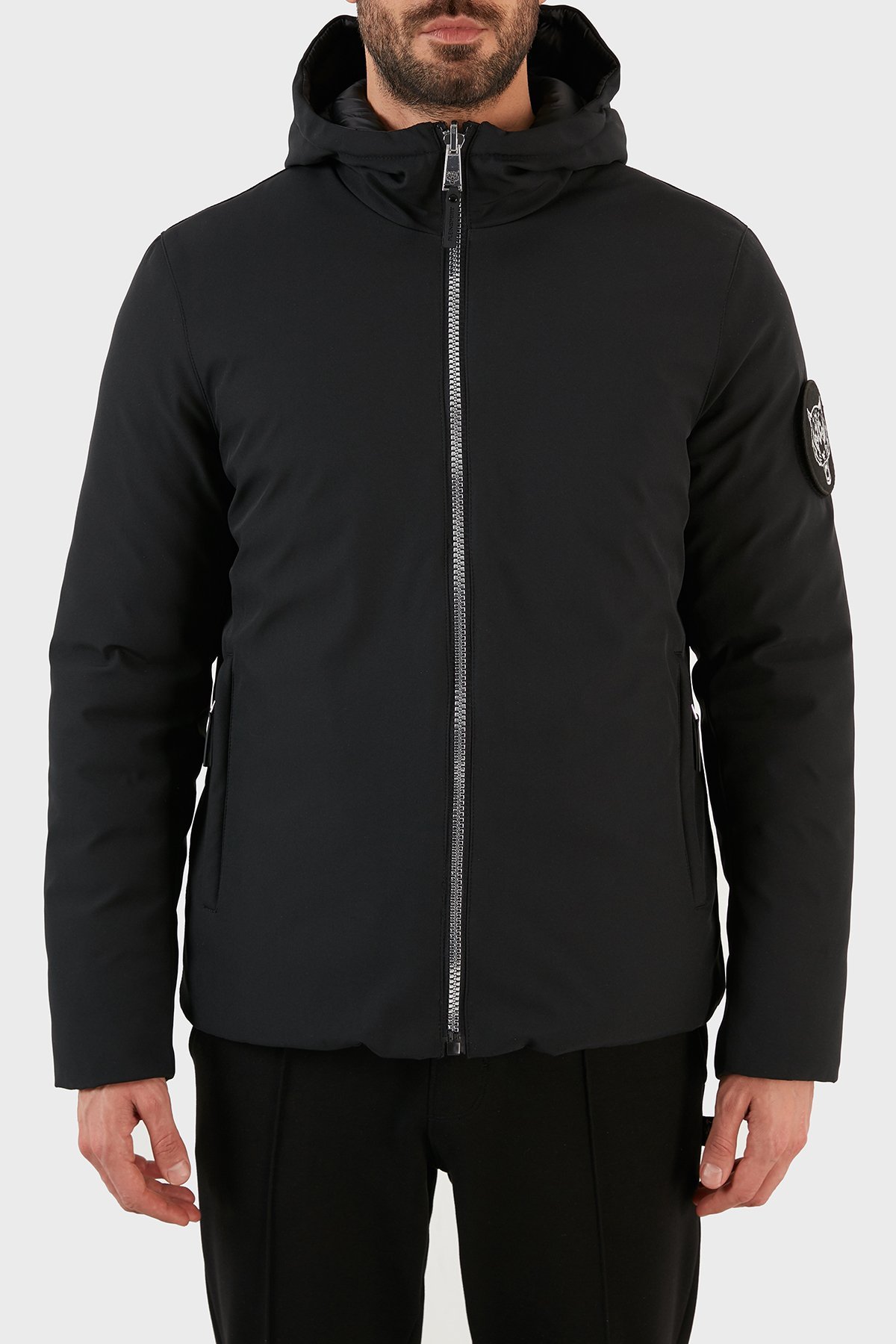 Logolu Kapüşonlu Çift Taraflı Erkek Mont UPPS10199 SİYAH