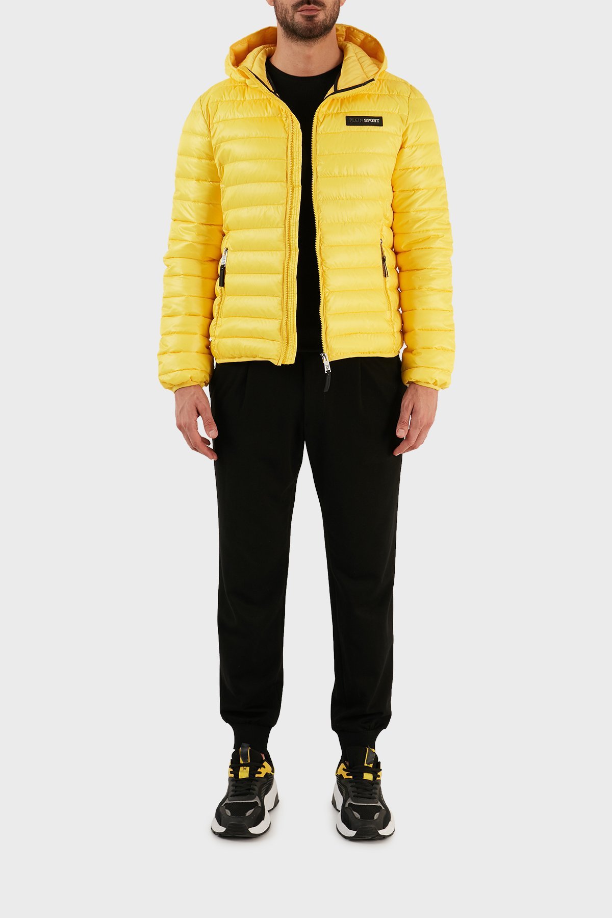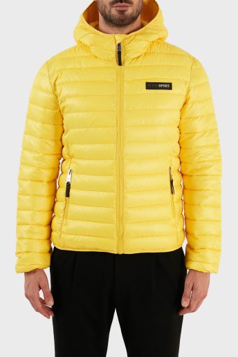 Logolu Kapüşonlu Yalıtımlı Şişme Erkek Mont UPPS10324 SARI