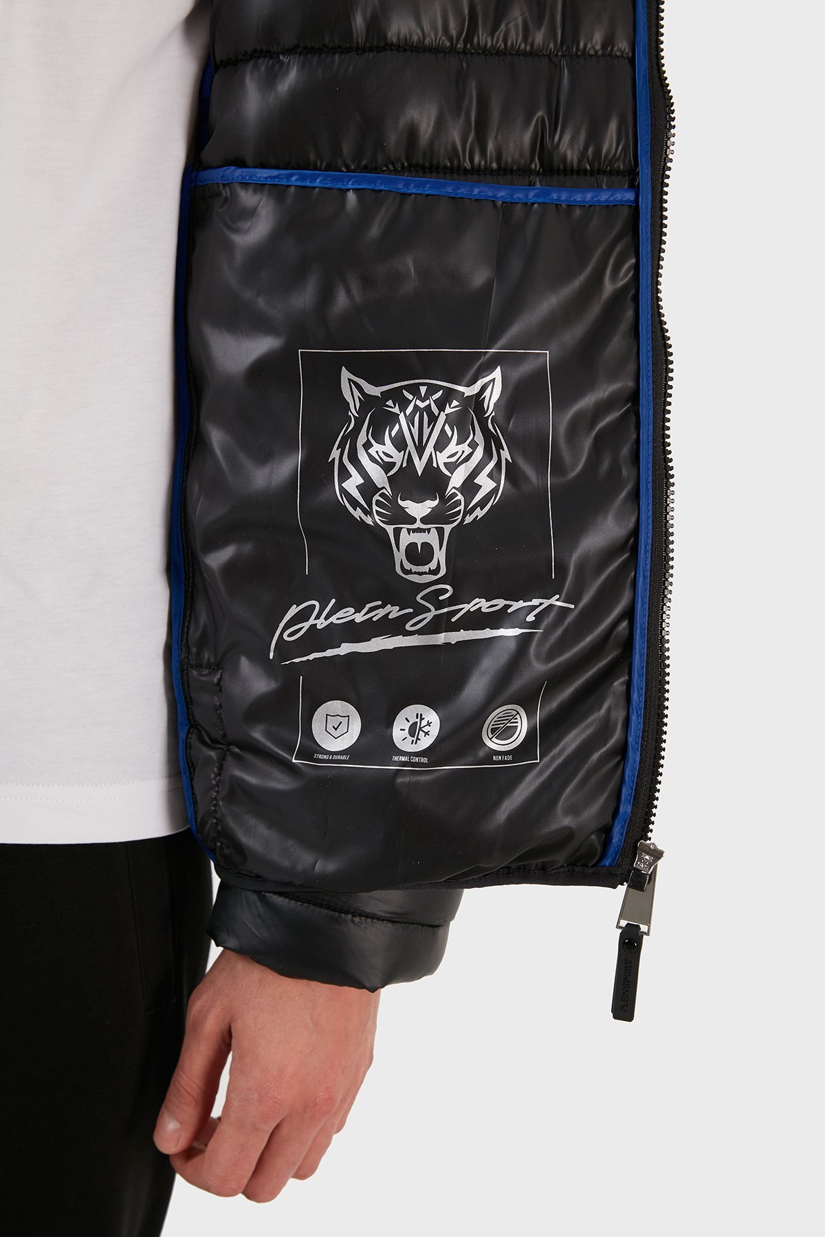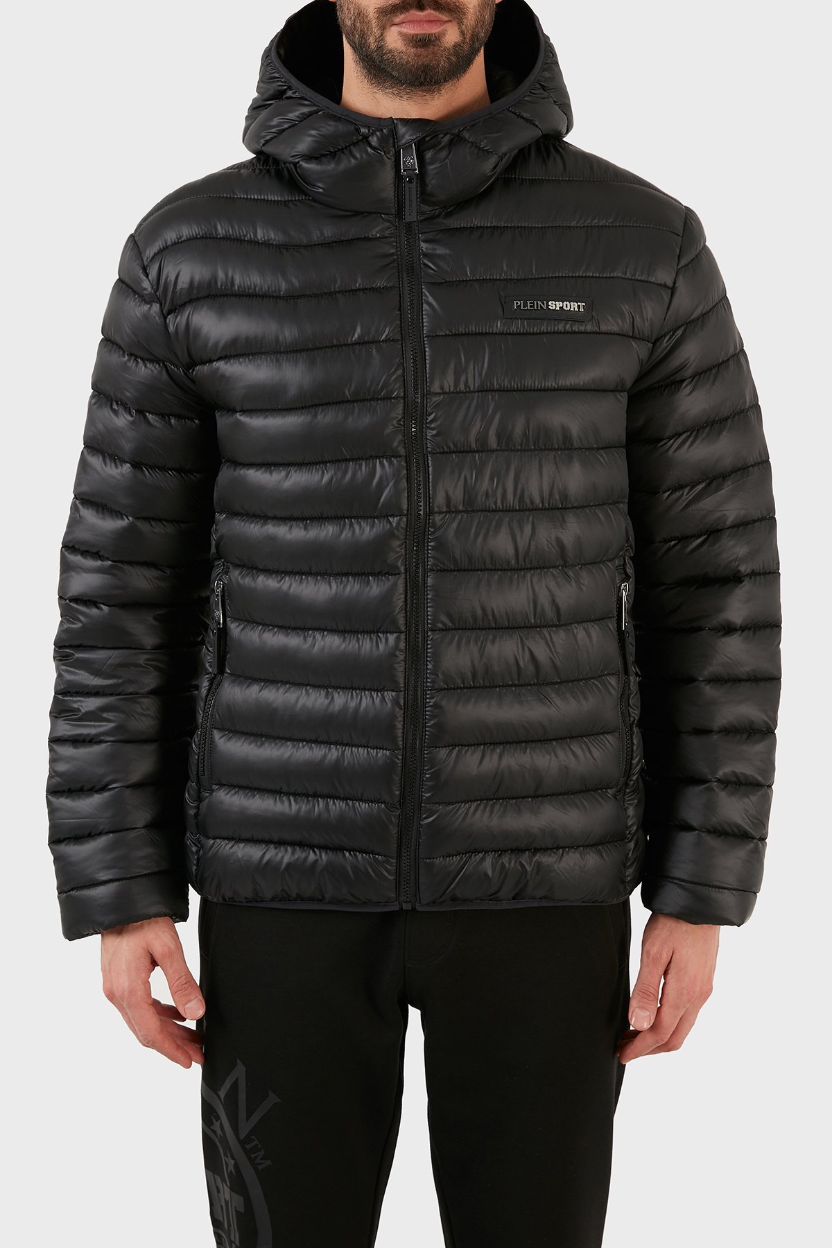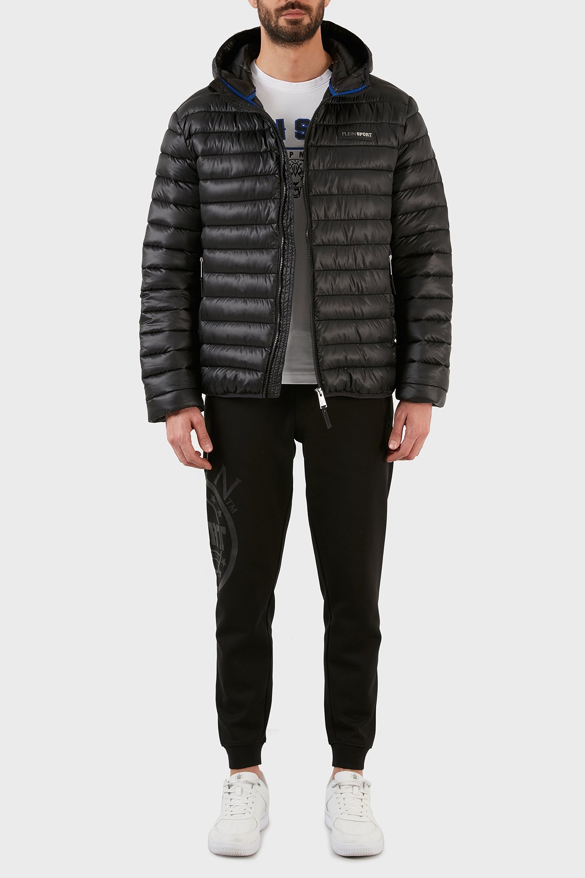 Logolu Yalıtımlı Kapüşonlu Şişme Erkek Mont UPPS10399 SİYAH