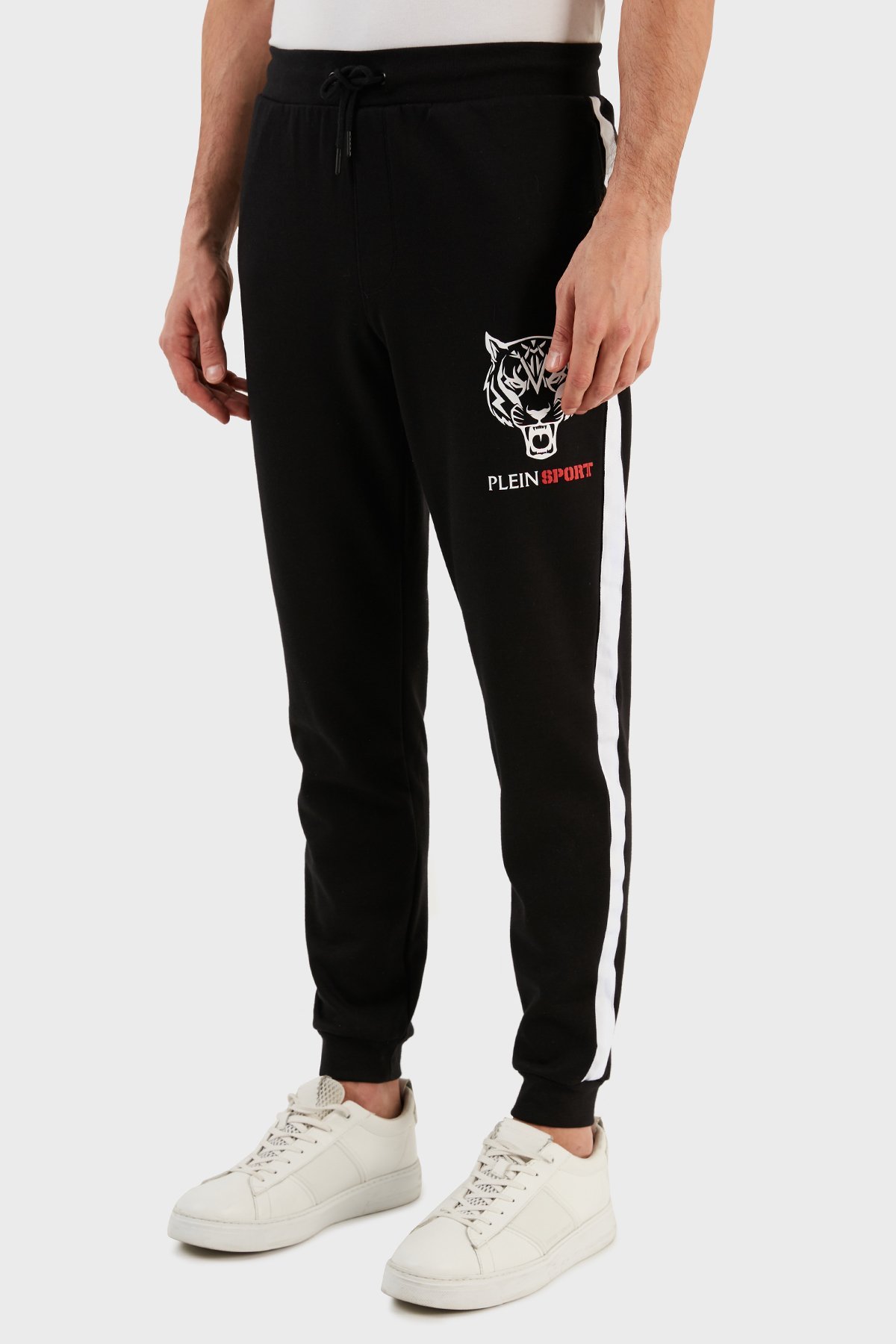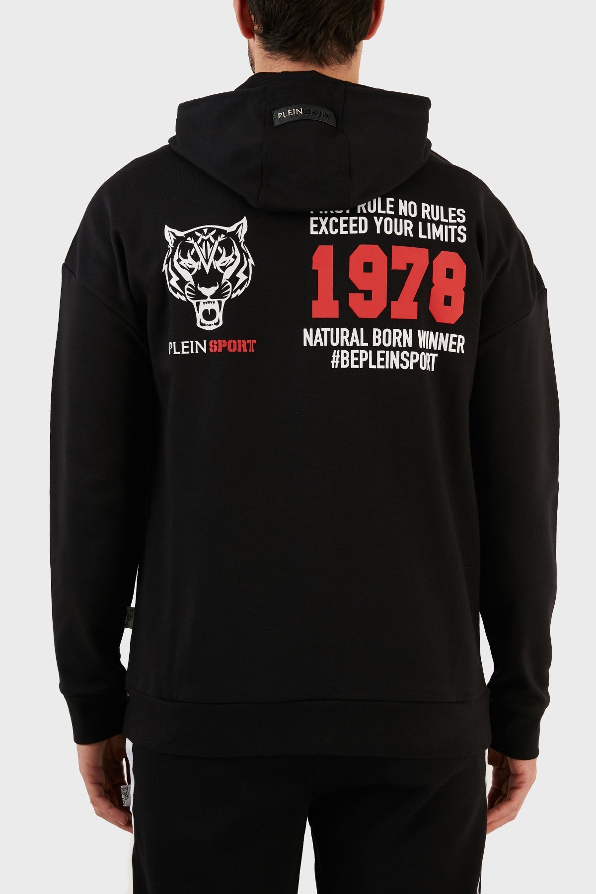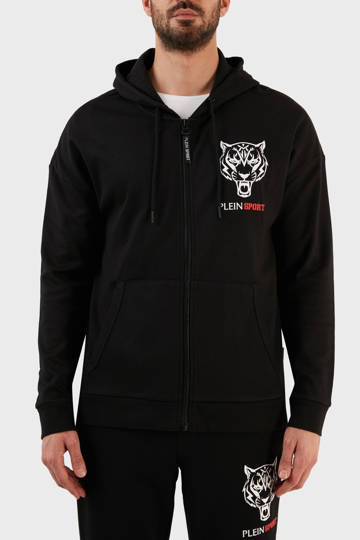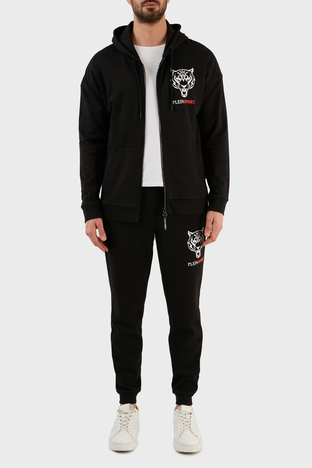 Pamuklu Baskılı Fermuarlı Kapüşonlu Erkek Eşofman Takımı TKPS000998 SİYAH
