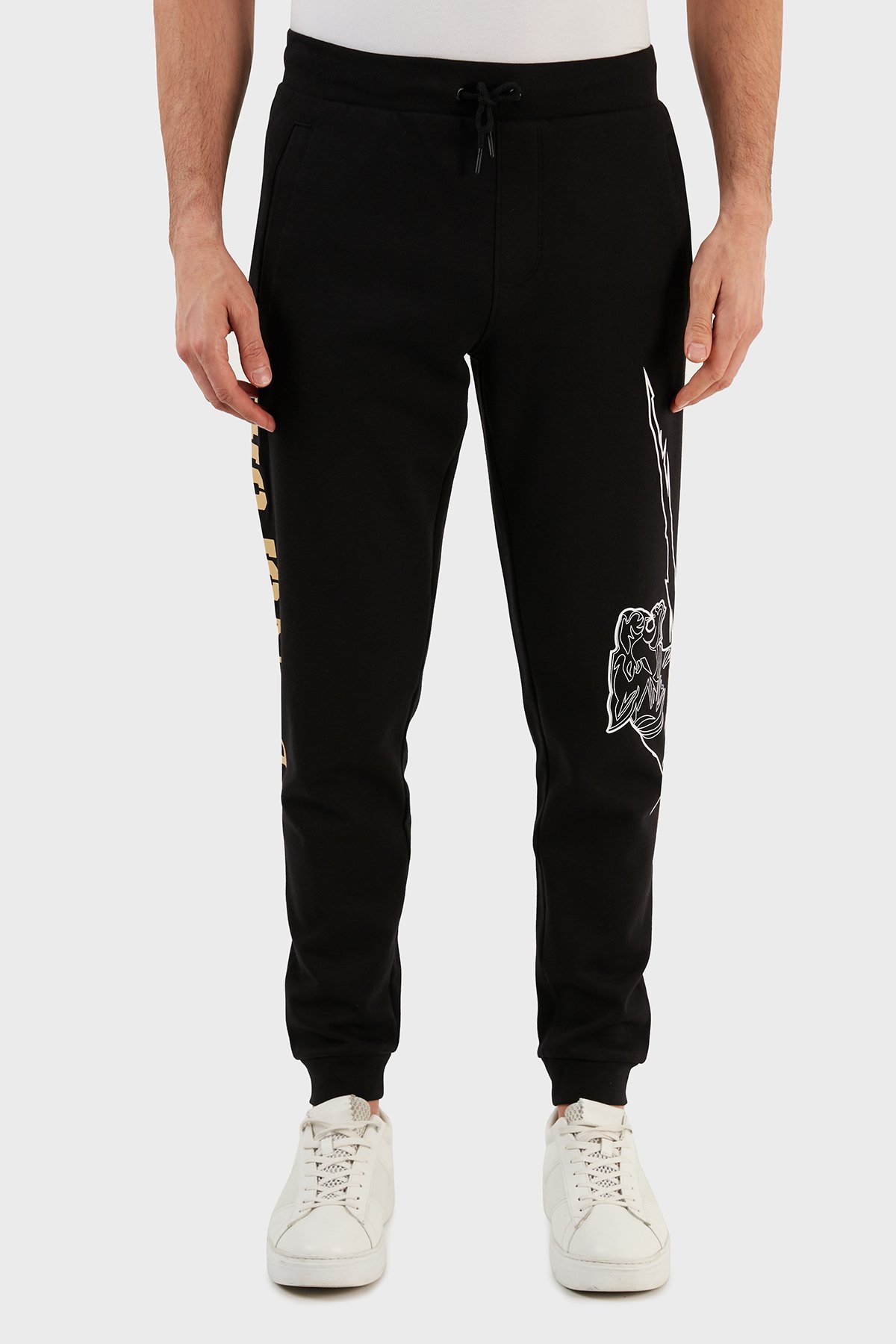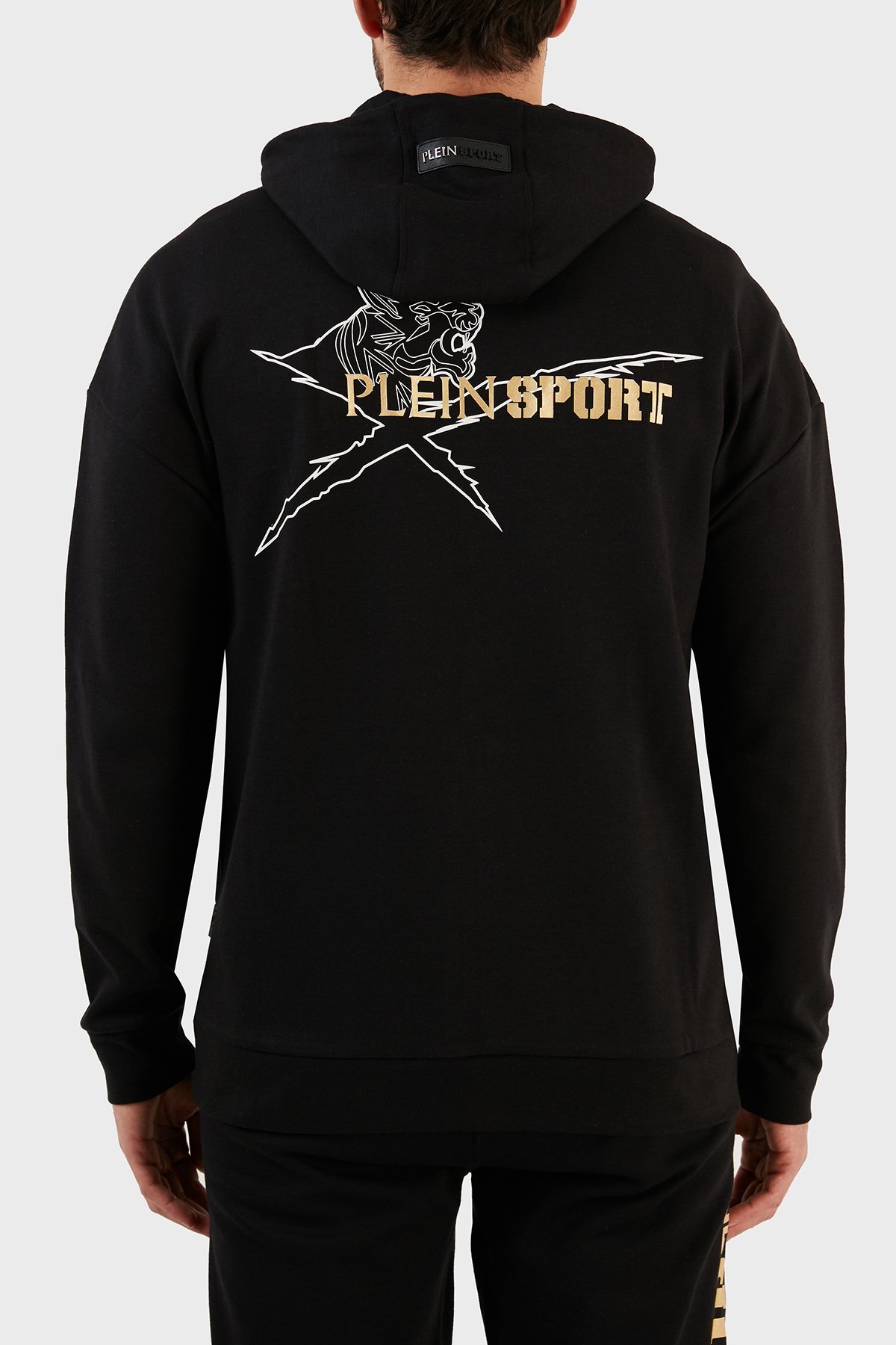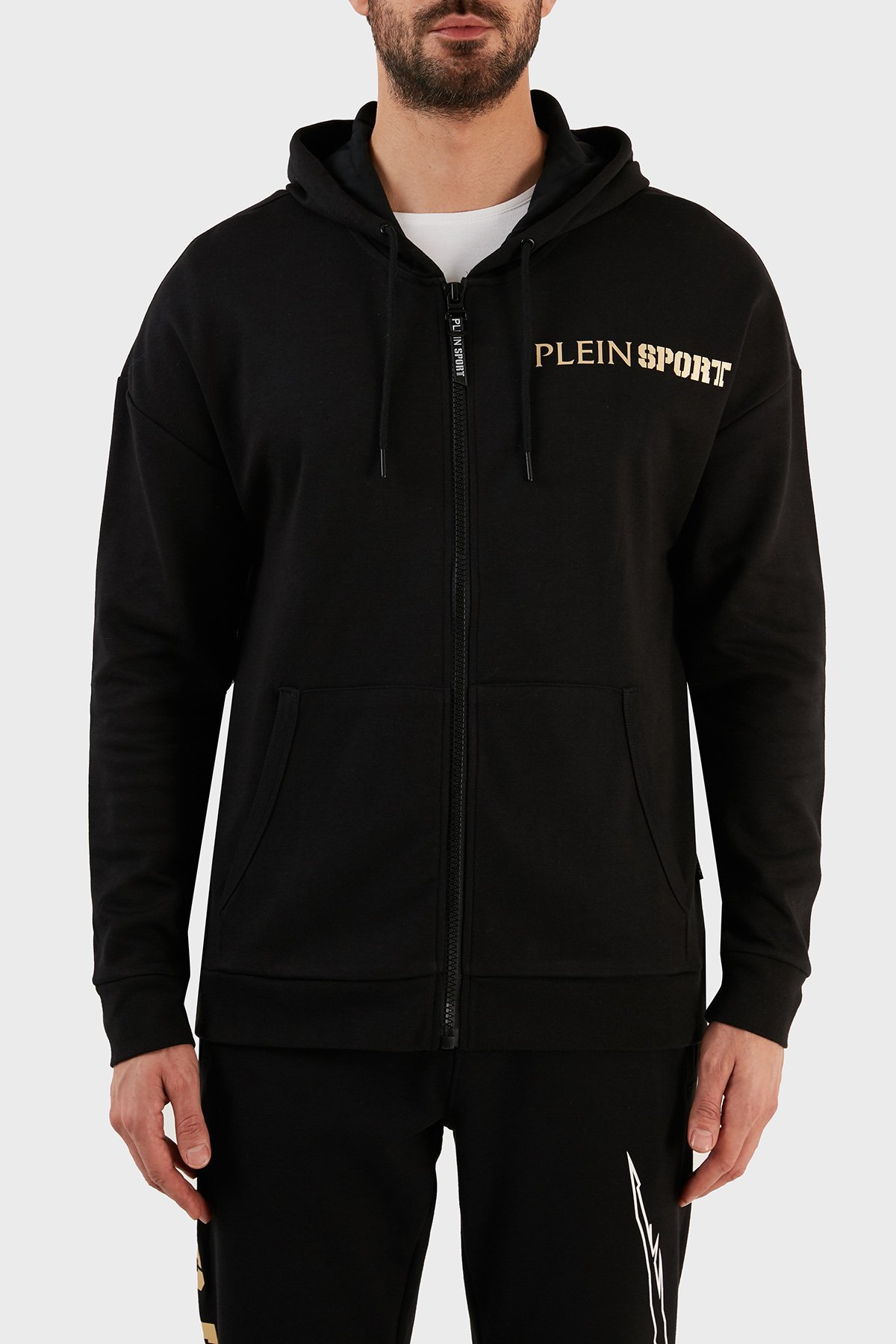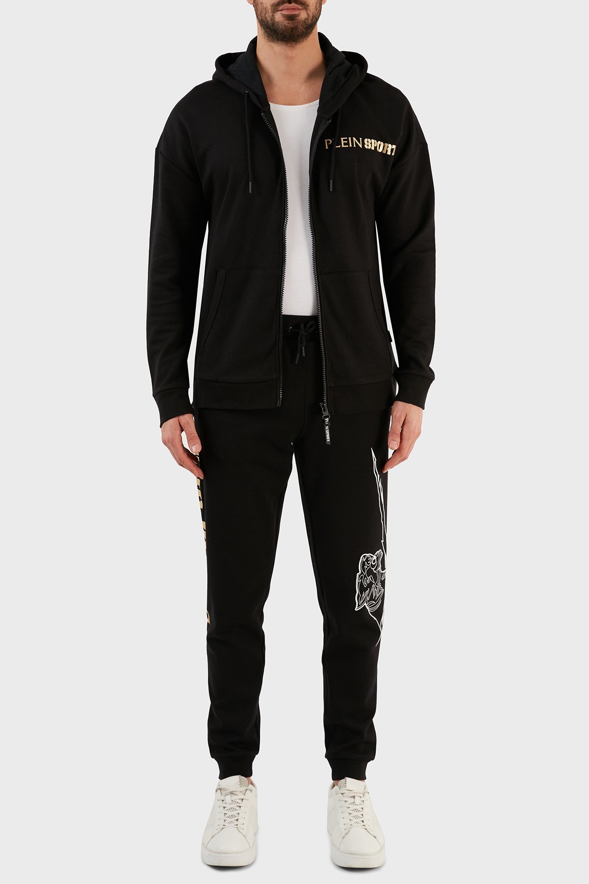 Pamuklu Baskılı Fermuarlı Kapüşonlu Erkek Eşofman Takımı TKPS001498 SİYAH