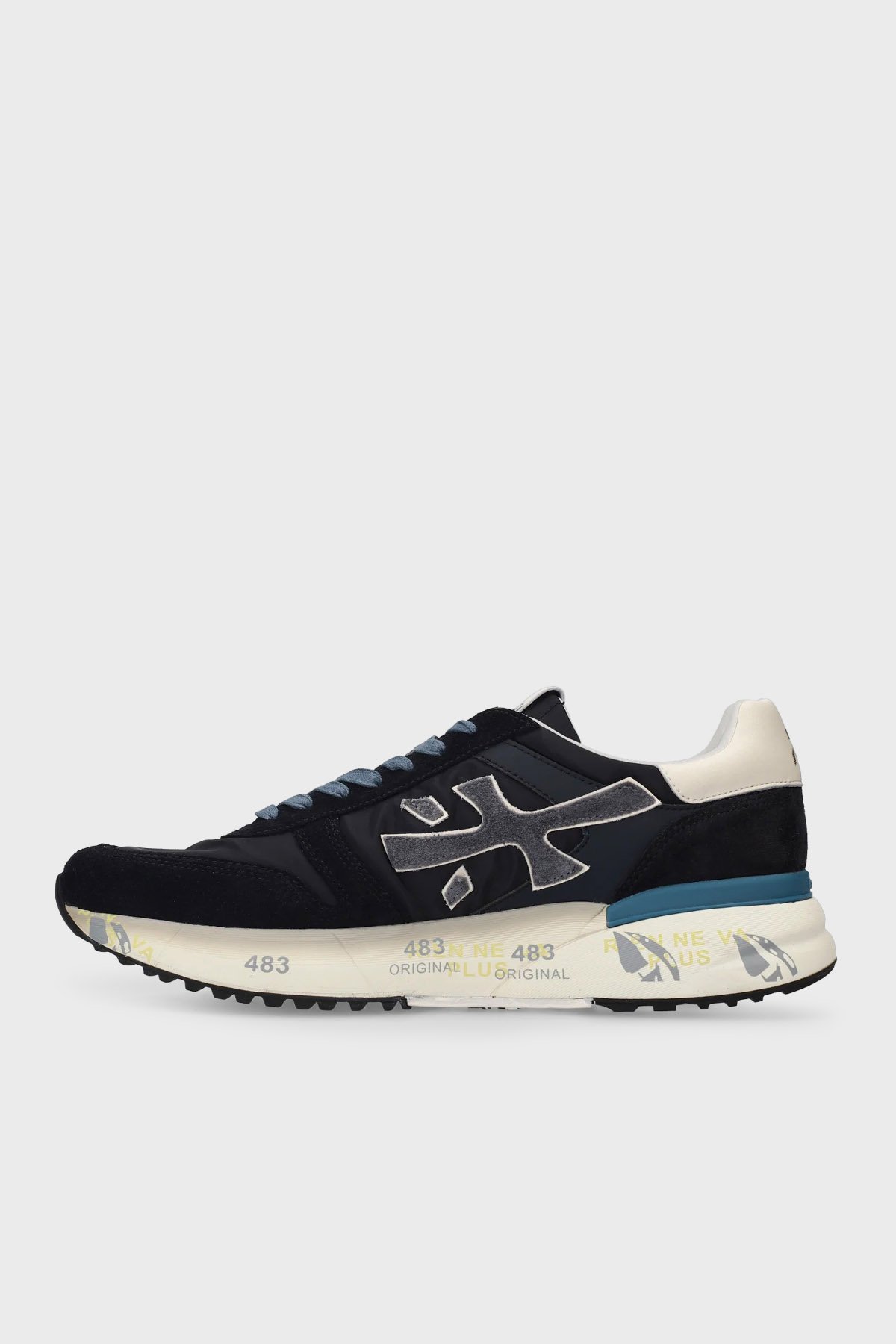 Deri Karışımlı Logolu Bağcıklı Sneaker Erkek Ayakkabı MICK 7716 SİYAH-LACİVERT