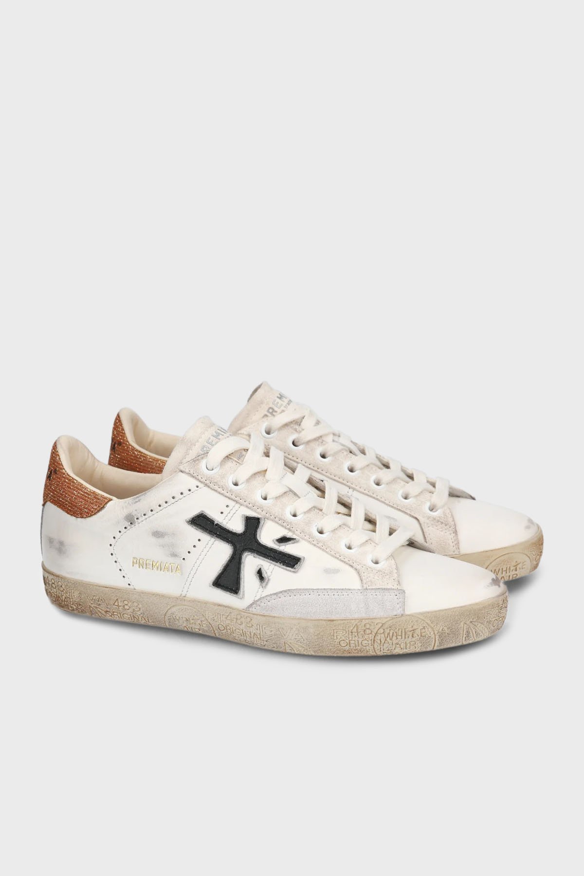 Deri Logolu Sneaker Bayan Ayakkabı STEVEND 6664 BEYAZ-GOLD