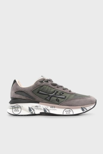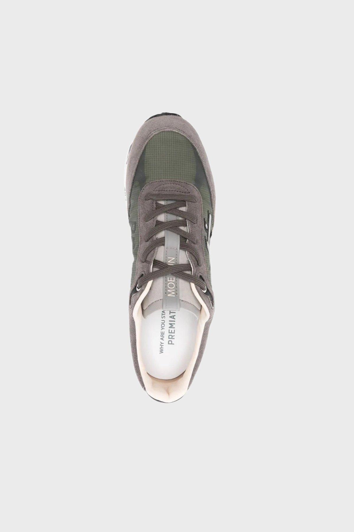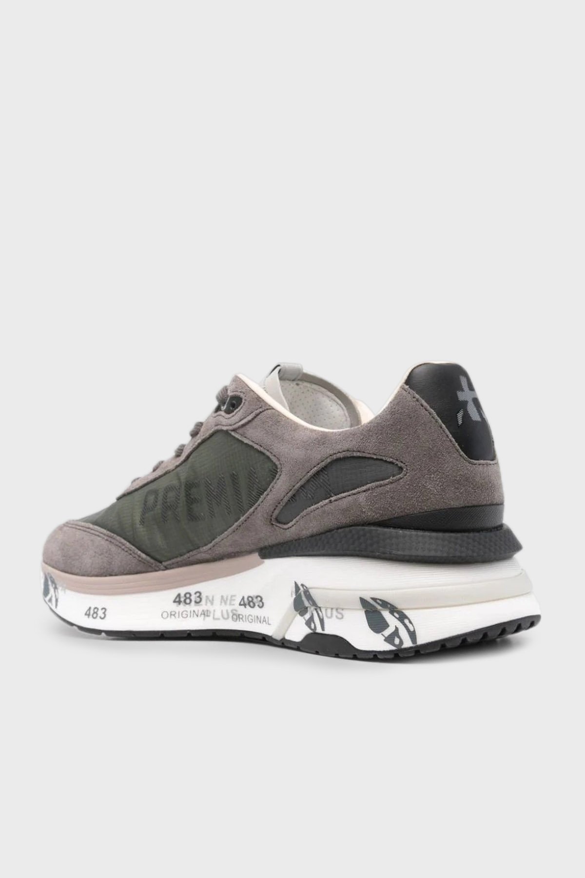 Logolu Hakiki Deri Karışımlı Sneaker Erkek Ayakkabı MOERUN 7106 Haki-Füme