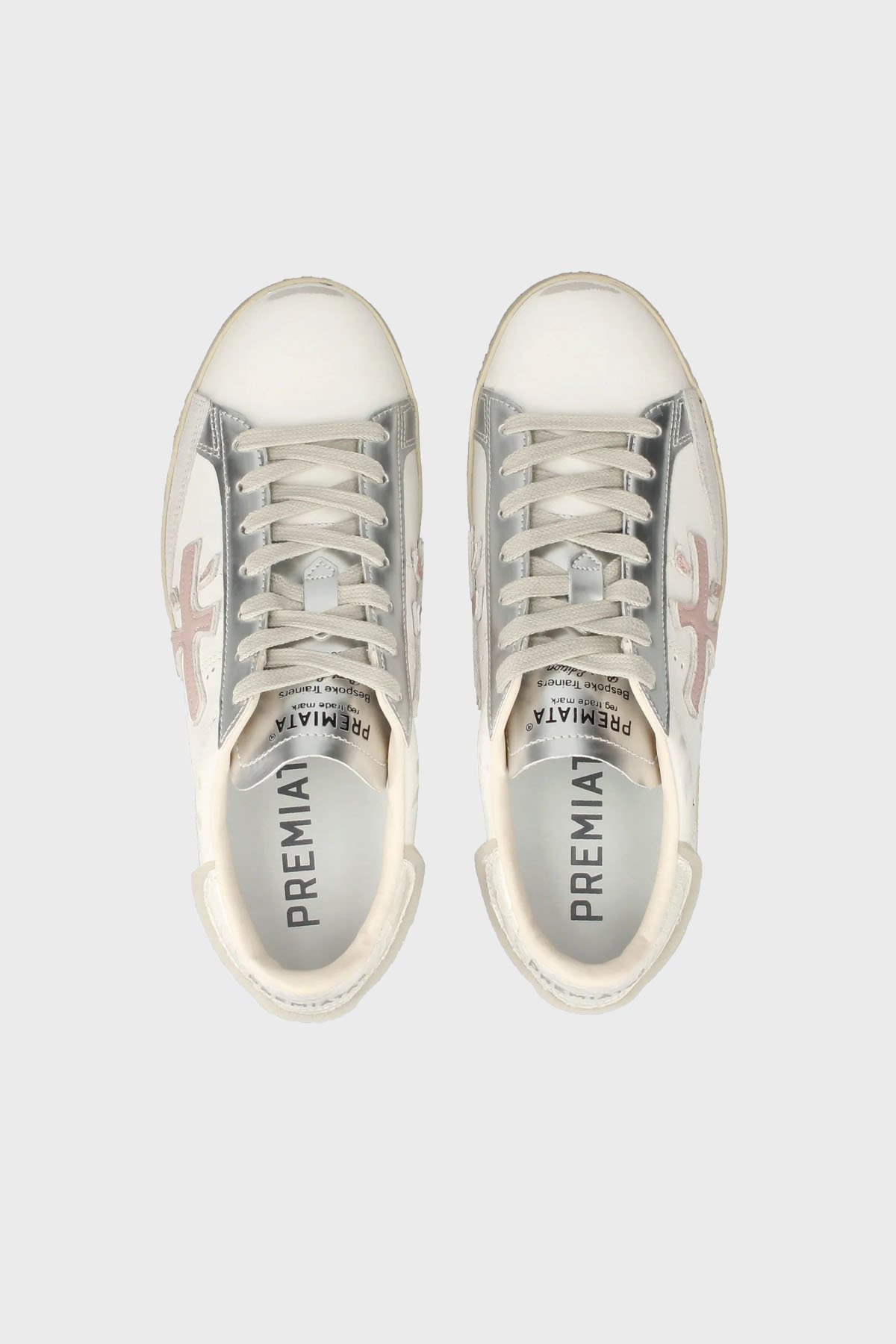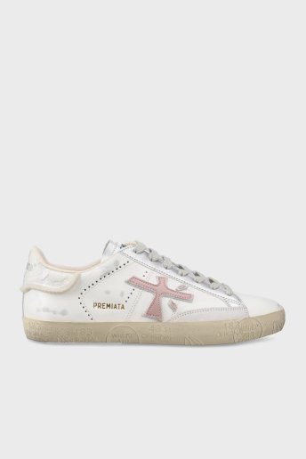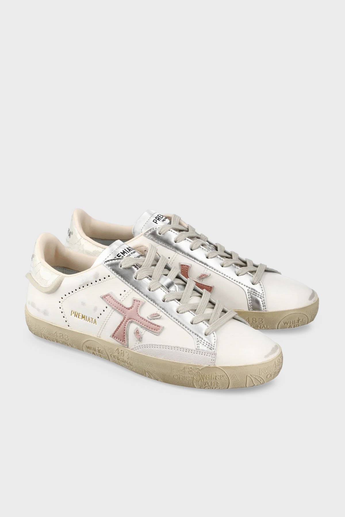 Logolu Hakiki Deri Vintage Sneaker Bayan Ayakkabı STEVEND 7281 EKRU