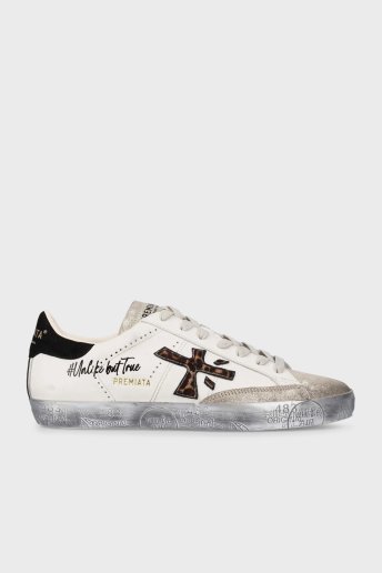 Sim Detaylı Logolu Deri Sneaker Bayan Ayakkabı STEVEND 7605 BEYAZ-GÜMÜŞ