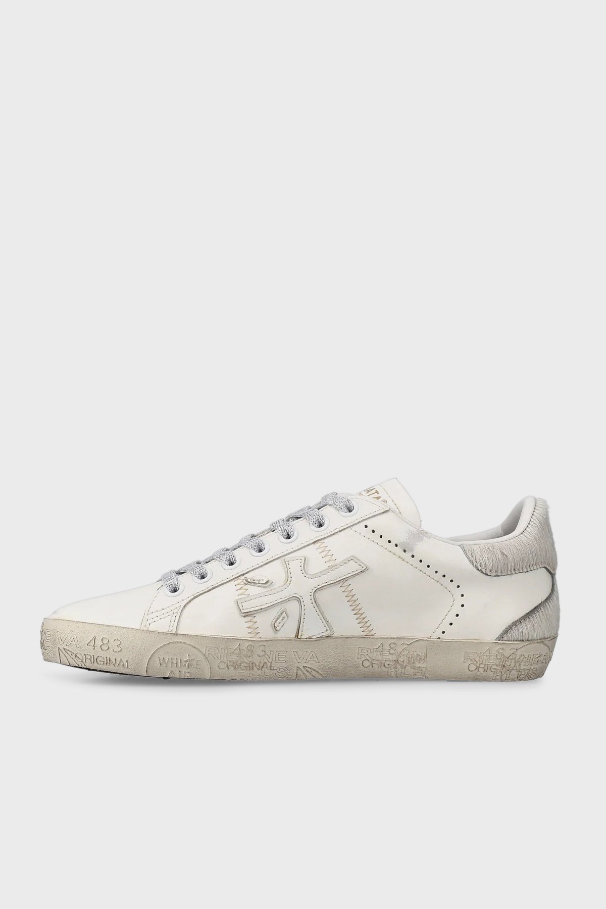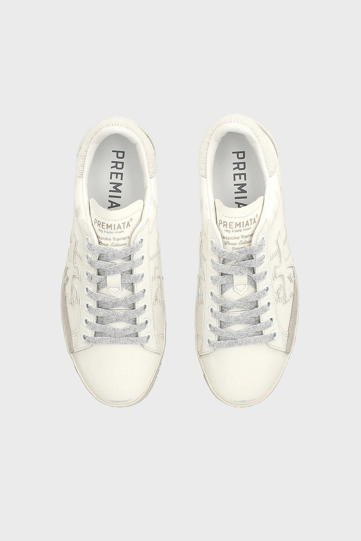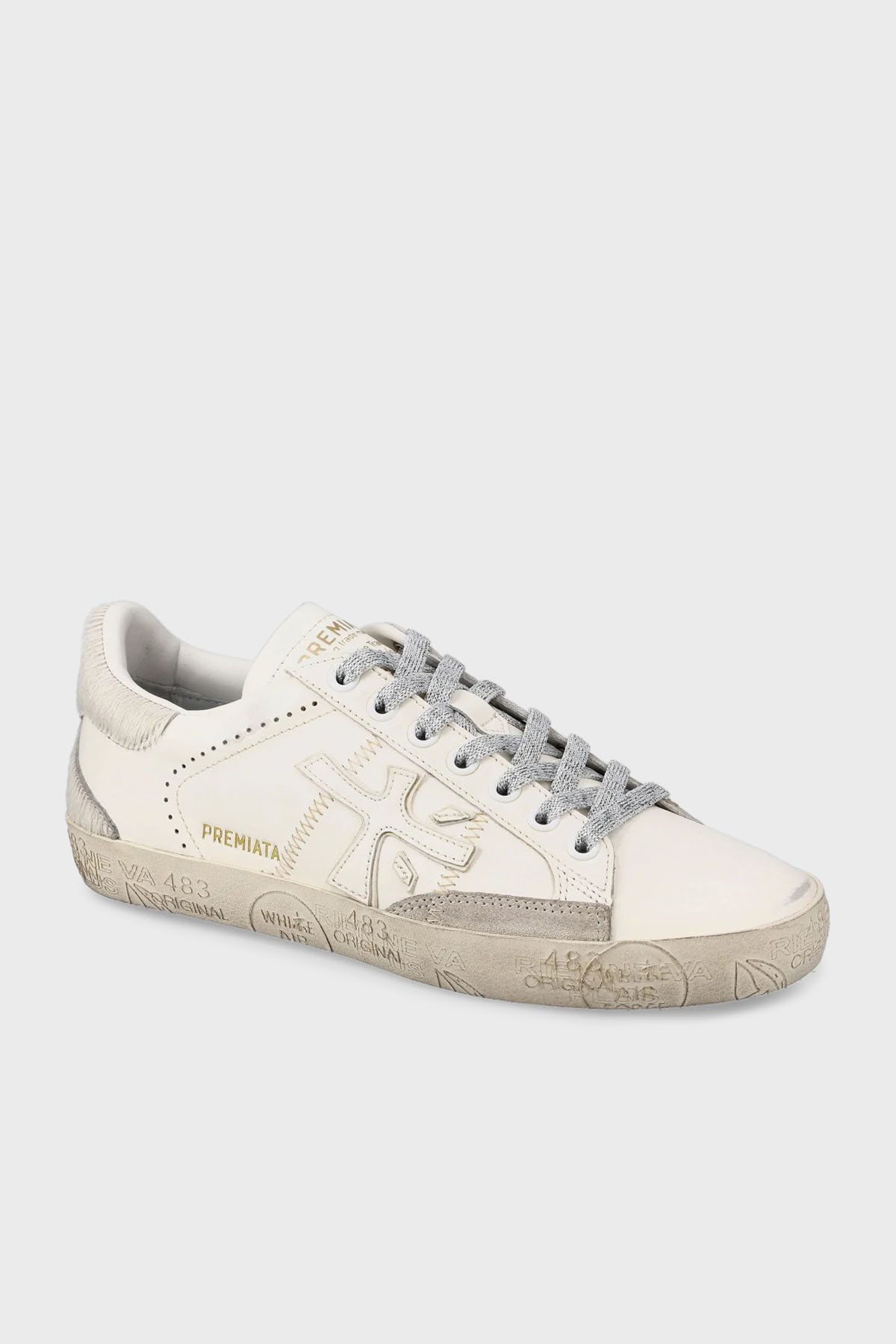 Simli Bağcık Detaylı Deri Logolu Sneaker Bayan Ayakkabı STEVEND 7608 EKRU