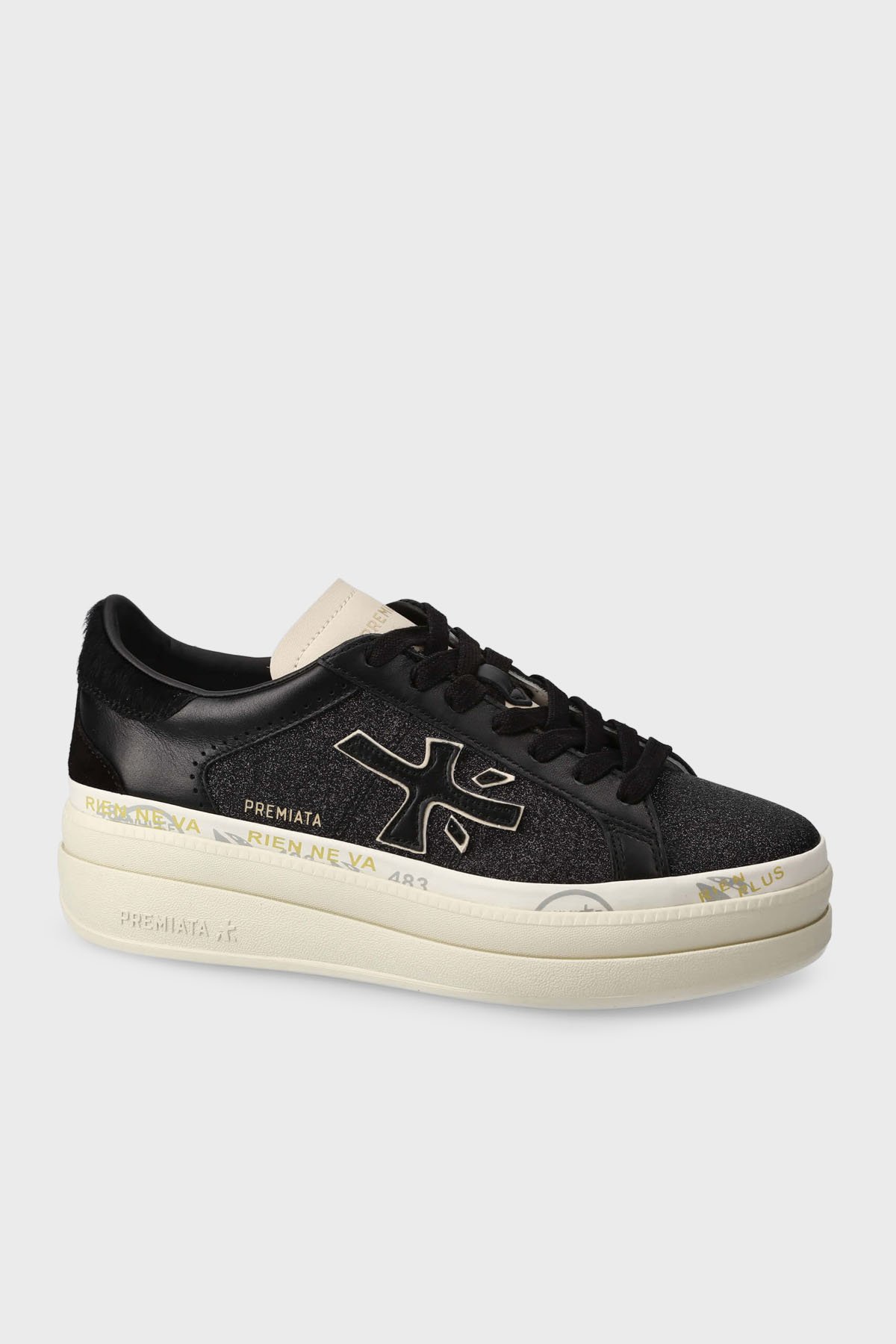 Simli Deri Karışımlı Sneaker Bayan Ayakkabı CLAUDIA 7755 SİYAH