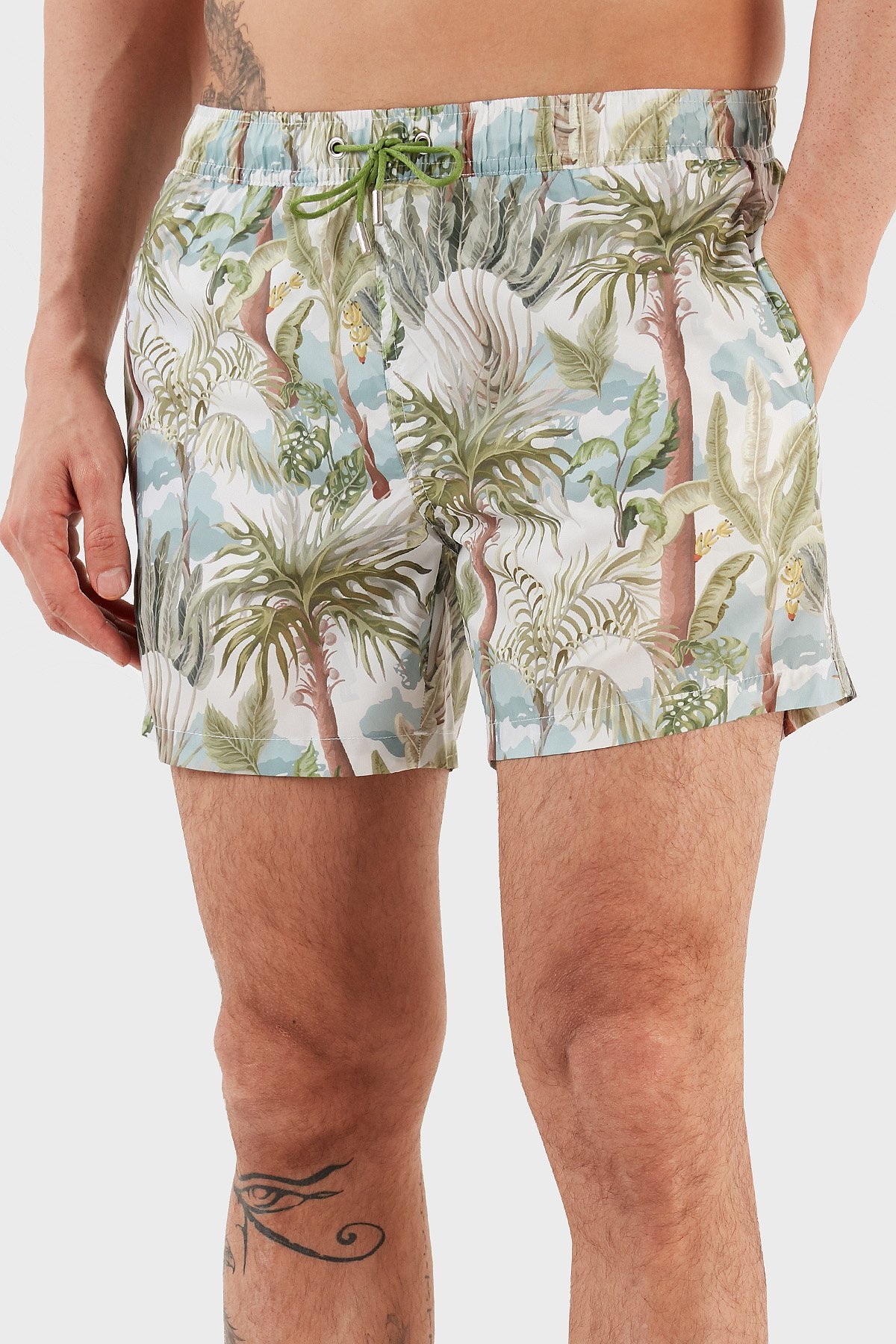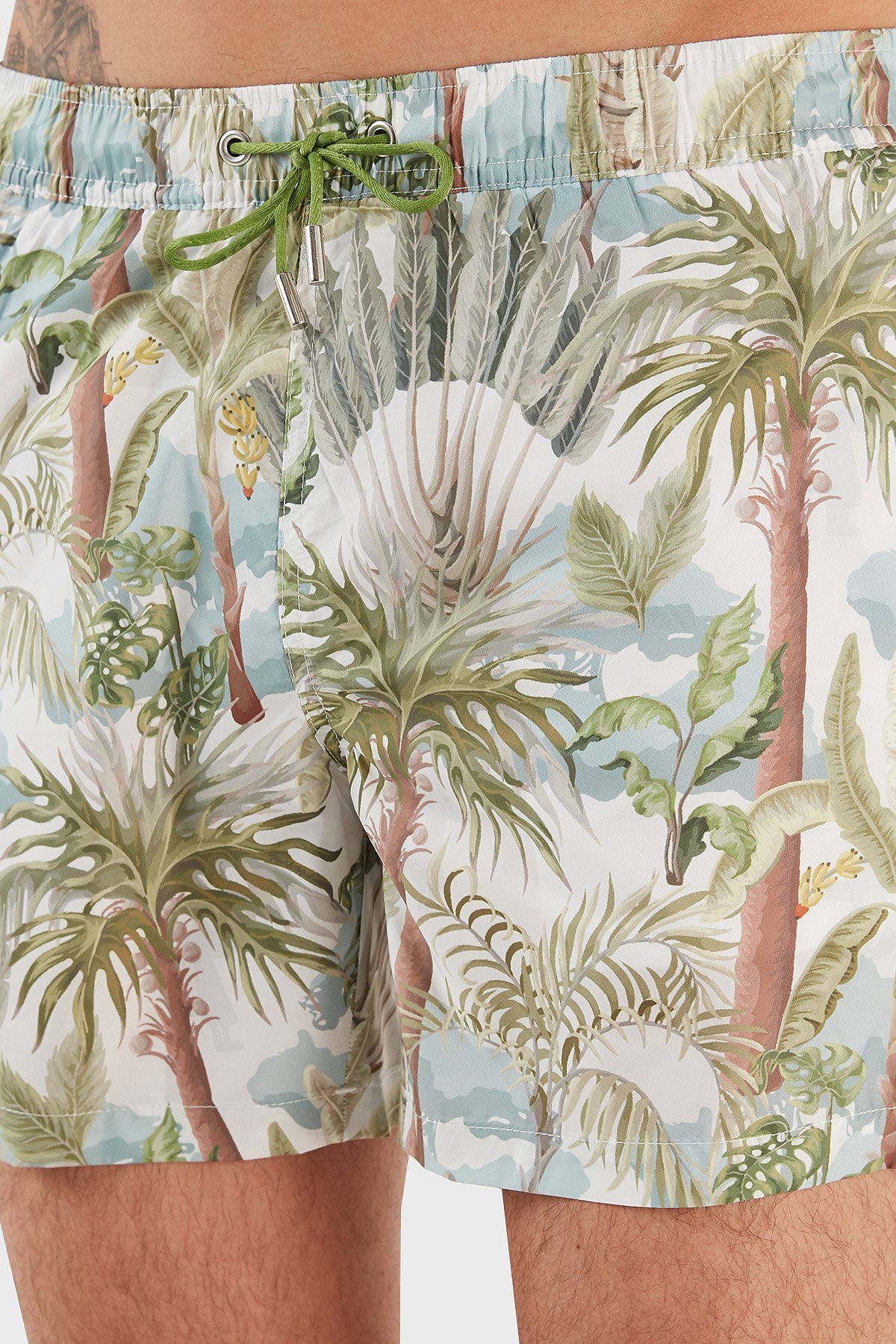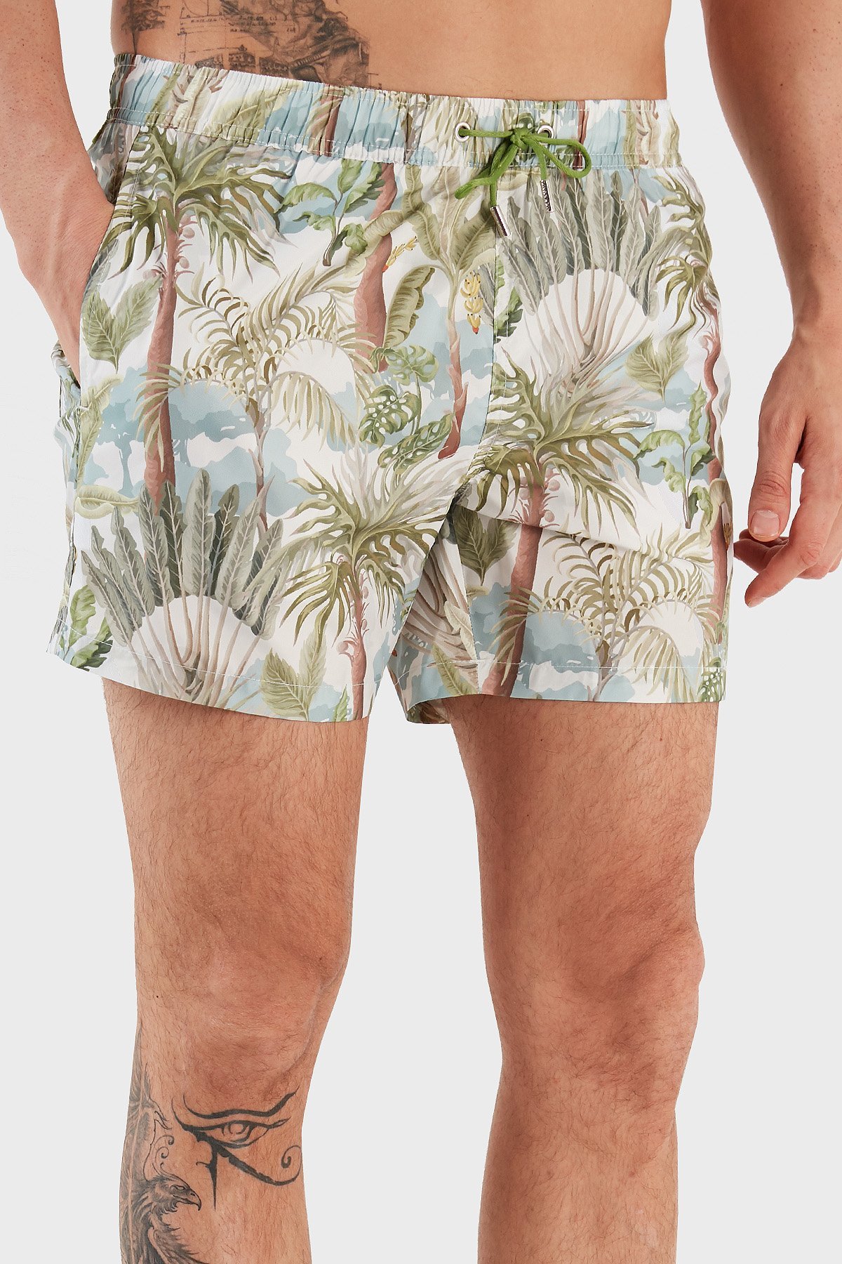 Desenli Deniz Şortu Belden Bağlamalı Cepli Erkek Mayo Short RMM465000008 23513 YEŞİL-MAVİ
