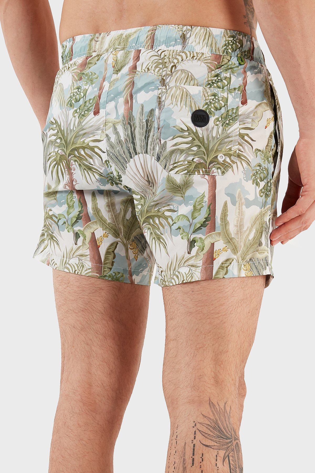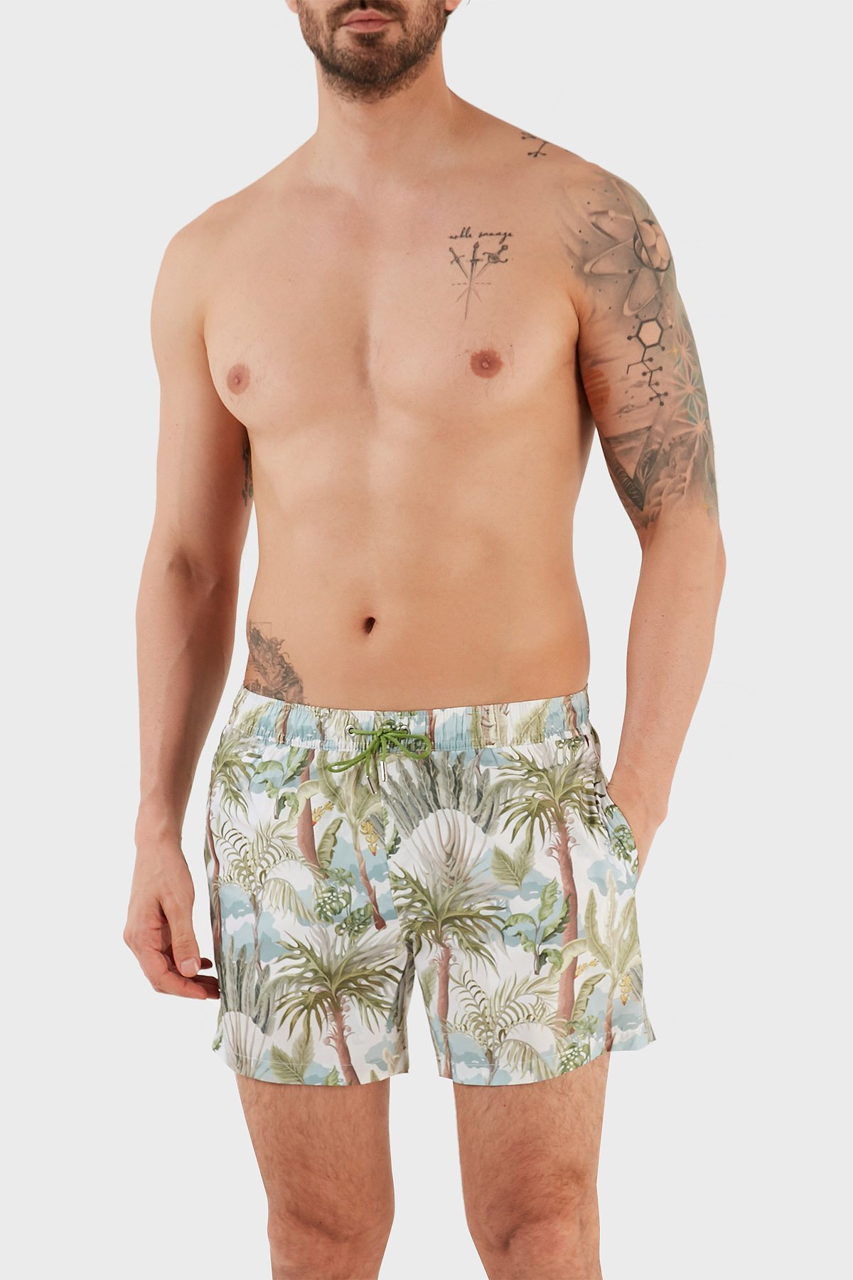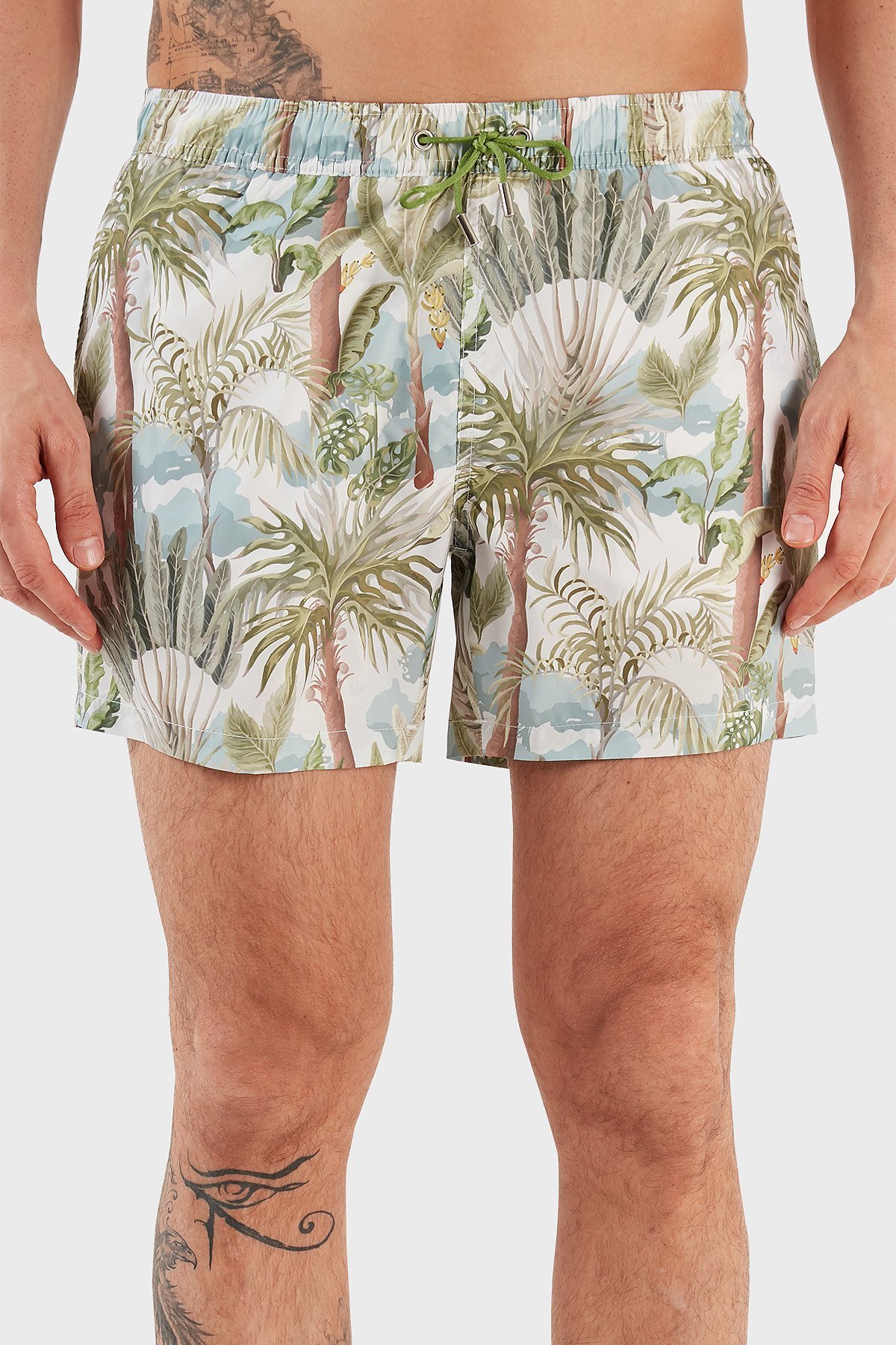 Desenli Deniz Şortu Belden Bağlamalı Cepli Erkek Mayo Short RMM465000008 23513 YEŞİL-MAVİ